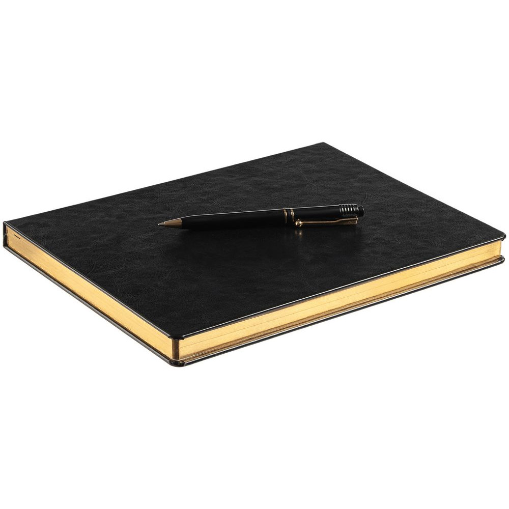 Статусный ежедневник с твердой обложкой и металлизированным обрезом, выполнен из материала Nebraska, черный АА.