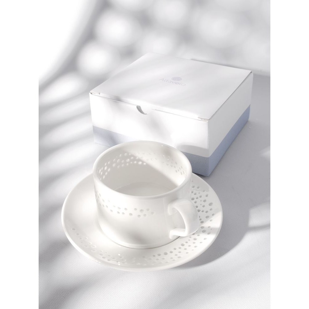 Чайная пара Coralli — легкая, словно светящаяся изнутри посуда с легендарным узором «рисовое зерно». Благодаря тонкому слою прозрачной глазури кружка выглядит кружевной и ажурной, при этом напиток гарантированно остается внутри.