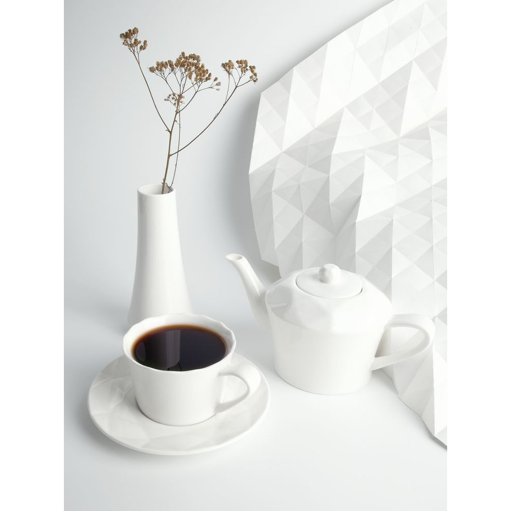 Линейка Diamante Bianco — настоящий бриллиант коллекции Altavolo. Структура и пропорции граней этой небольшой вазочки в точности повторяют верхнюю часть бриллианта классической огранки — корону. Присмотритесь — и вы увидите, как играет свет на молочно-белом фарфоре.