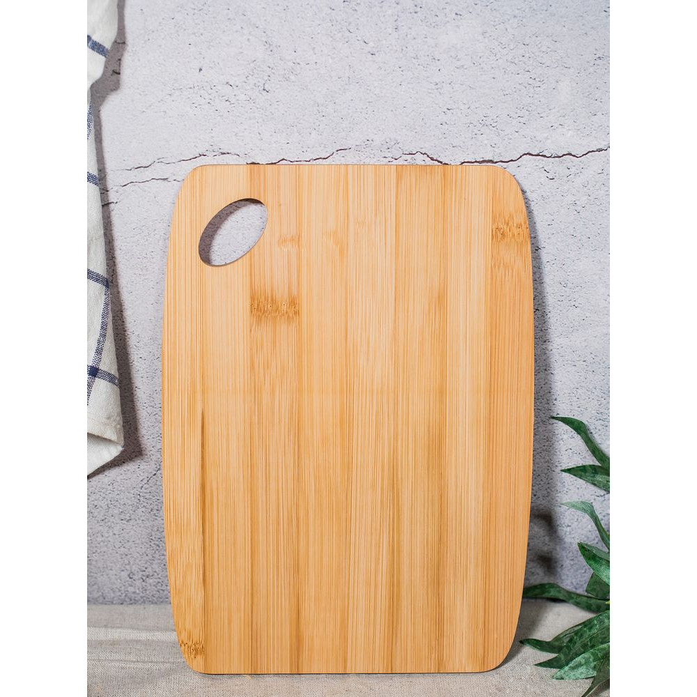Разделочная доска из бамбука подходит и для нарезки продуктов, и для их красивой подачи на стол. Не впитывает запахи.