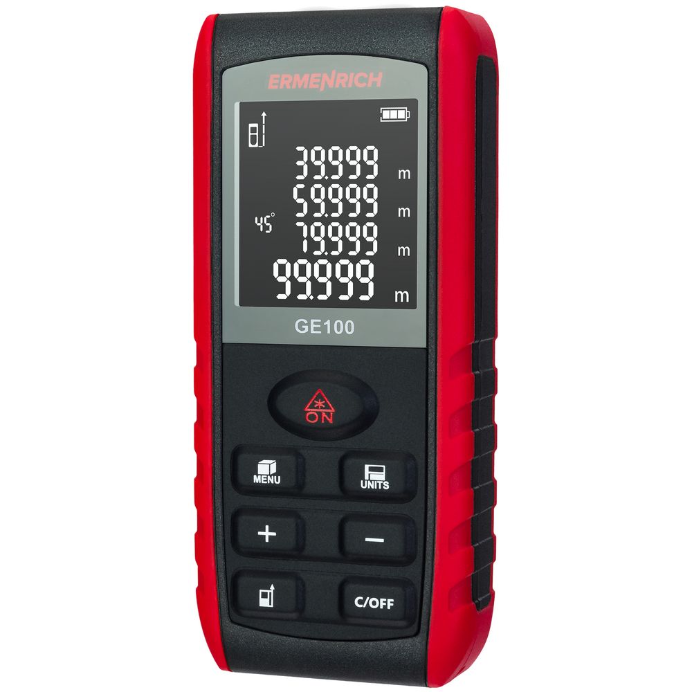 Ermenrich Reel GE100 — лазерная рулетка для самого широкого применения при измерении линейных размеров, площадей и объемов помещений, зданий и сооружений.