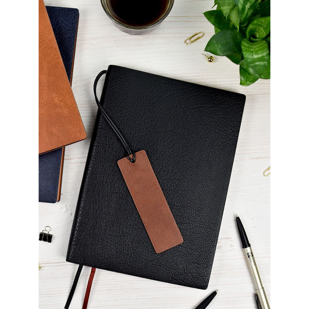 Ежедневник с гибкой обложкой и закладкой из искусственной кожи, дополнен капталом и двойным ляссе.