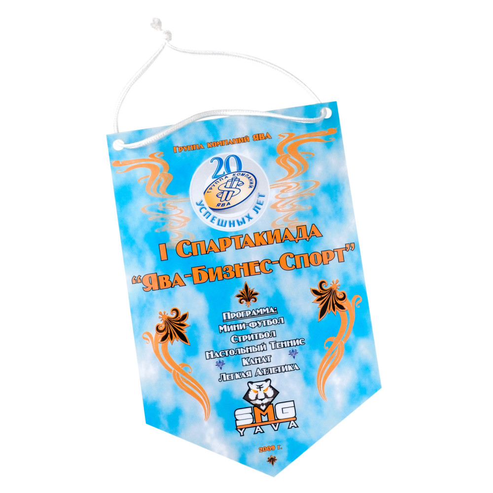 Ламинированный бумажный вымпел иззготавливается из бумаги с нанесением ламинирующего покрытия. Изображение и текст по вашему макету наносятся методом цифровой печати с двух сторон.