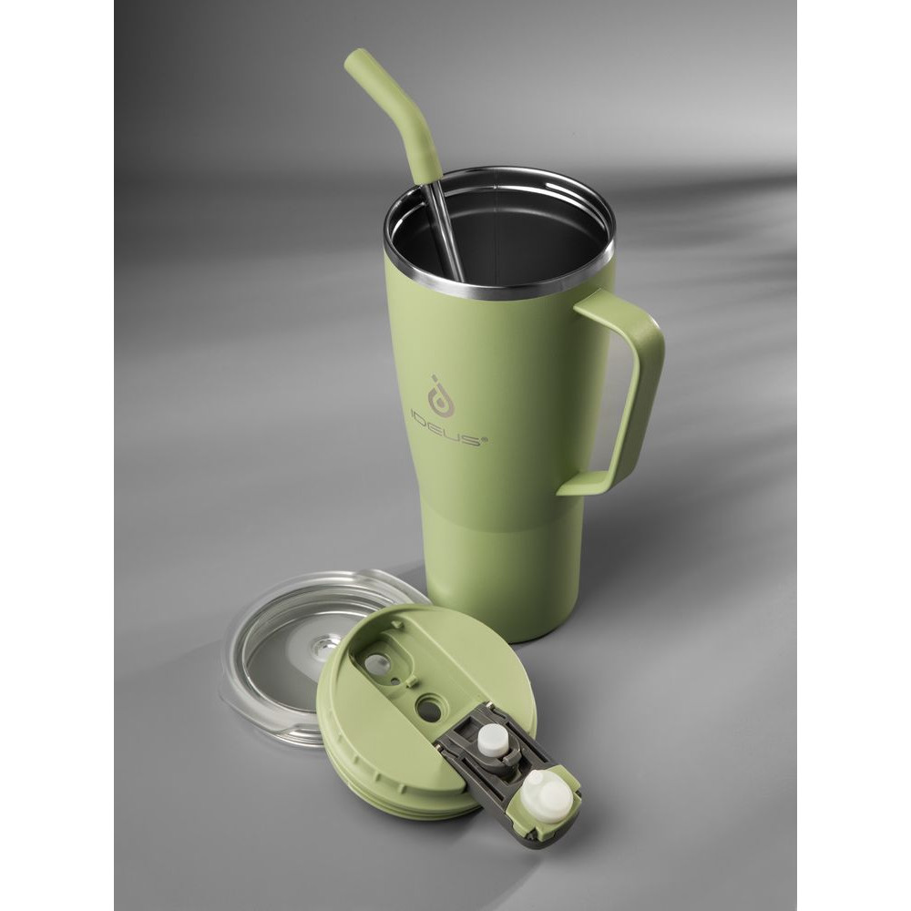 • 2 крышки в комплекте: одна на 100% герметичная с механизмом блокировки отверстия для питья, вторая — с отверстием для трубочки