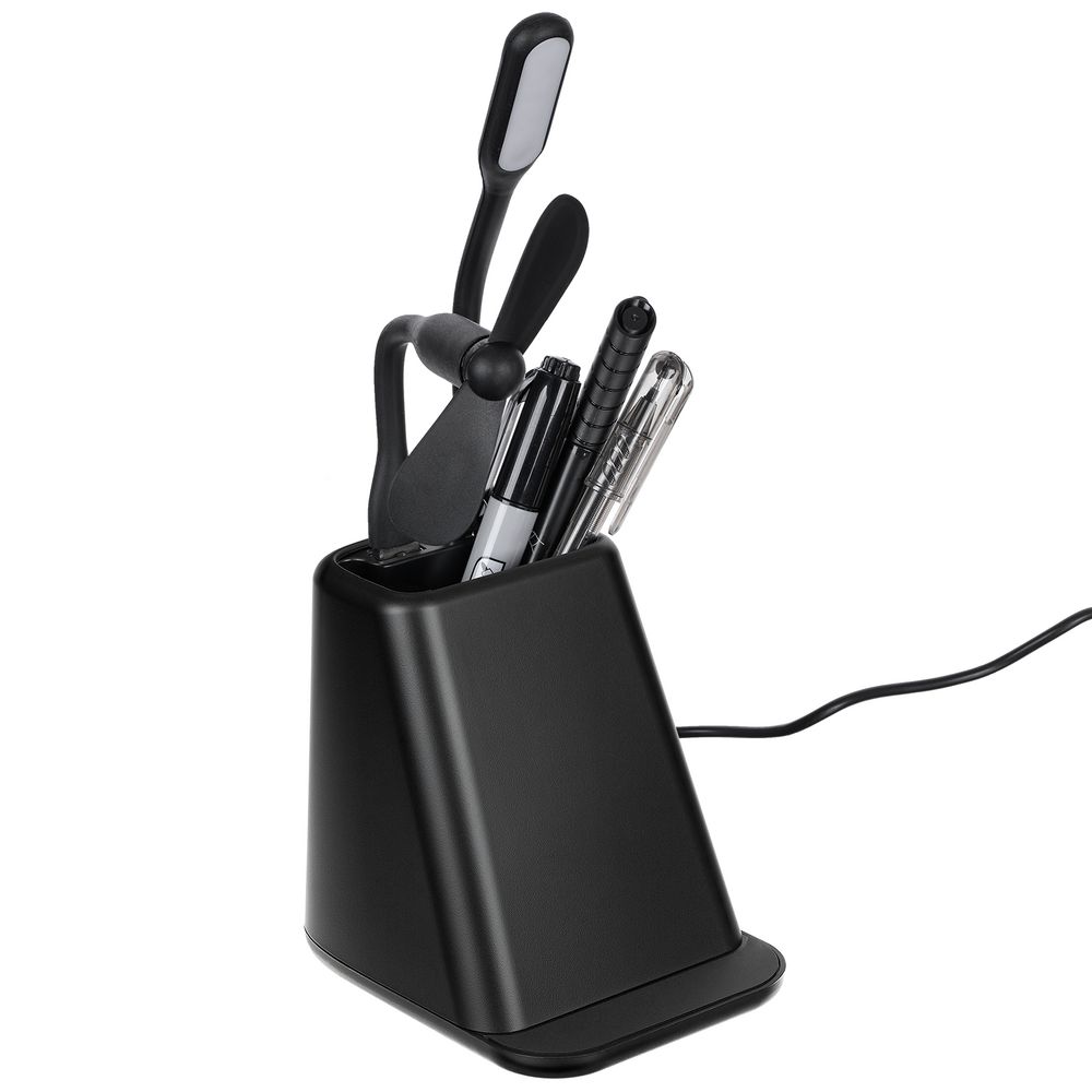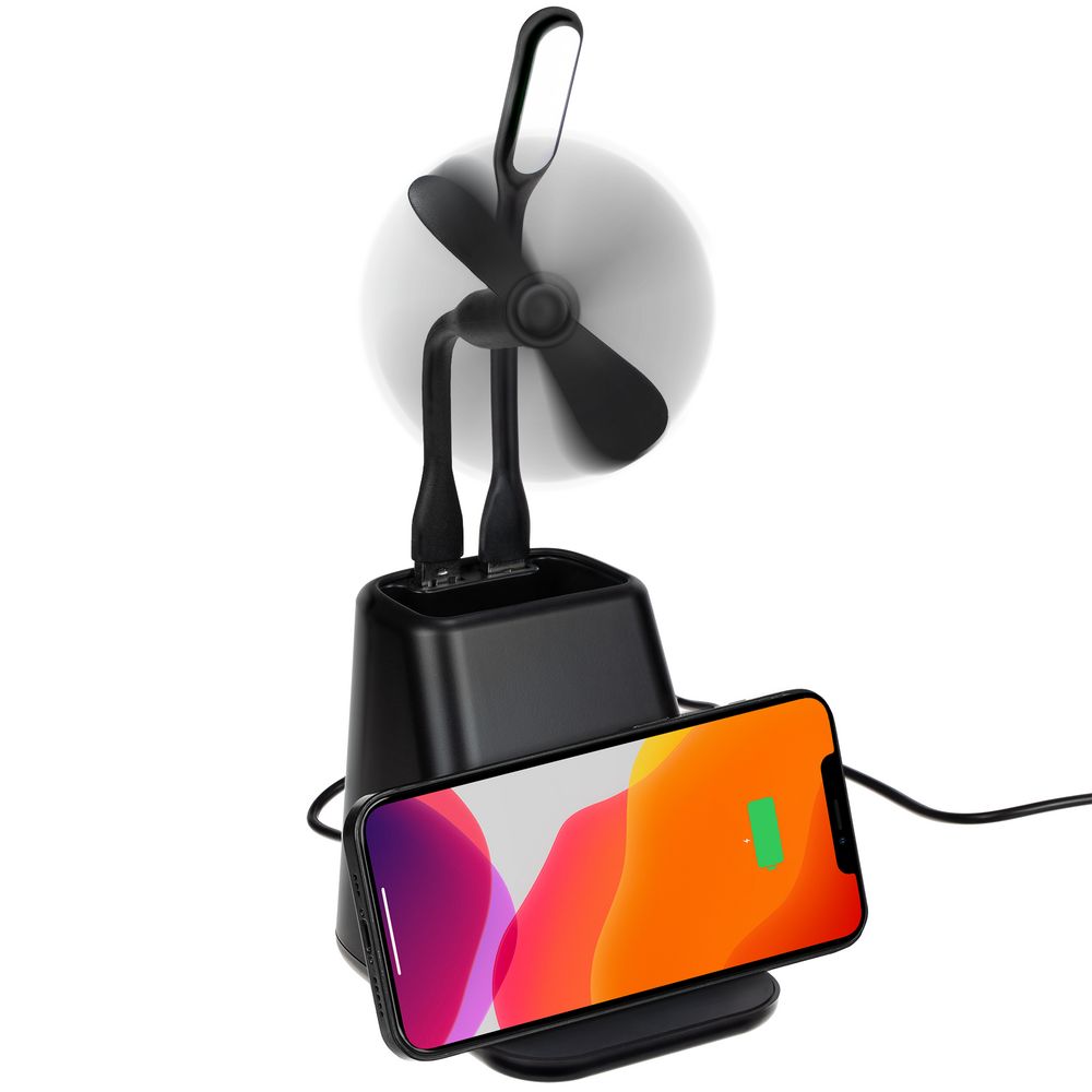 • Настольный органайзер с зарядкой, лампой, вентилятором и подсветкой логотипа powerTower, черный