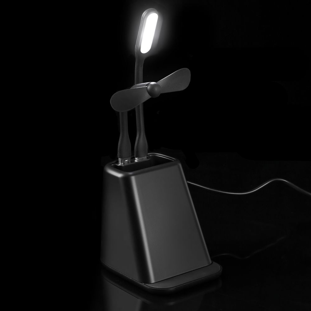 Дополняют функционал устройства портативная лампа и вентилятор, которые входят в комплект. Порты для подключения лампы и вентилятора можно использовать для зарядки гаджетов.