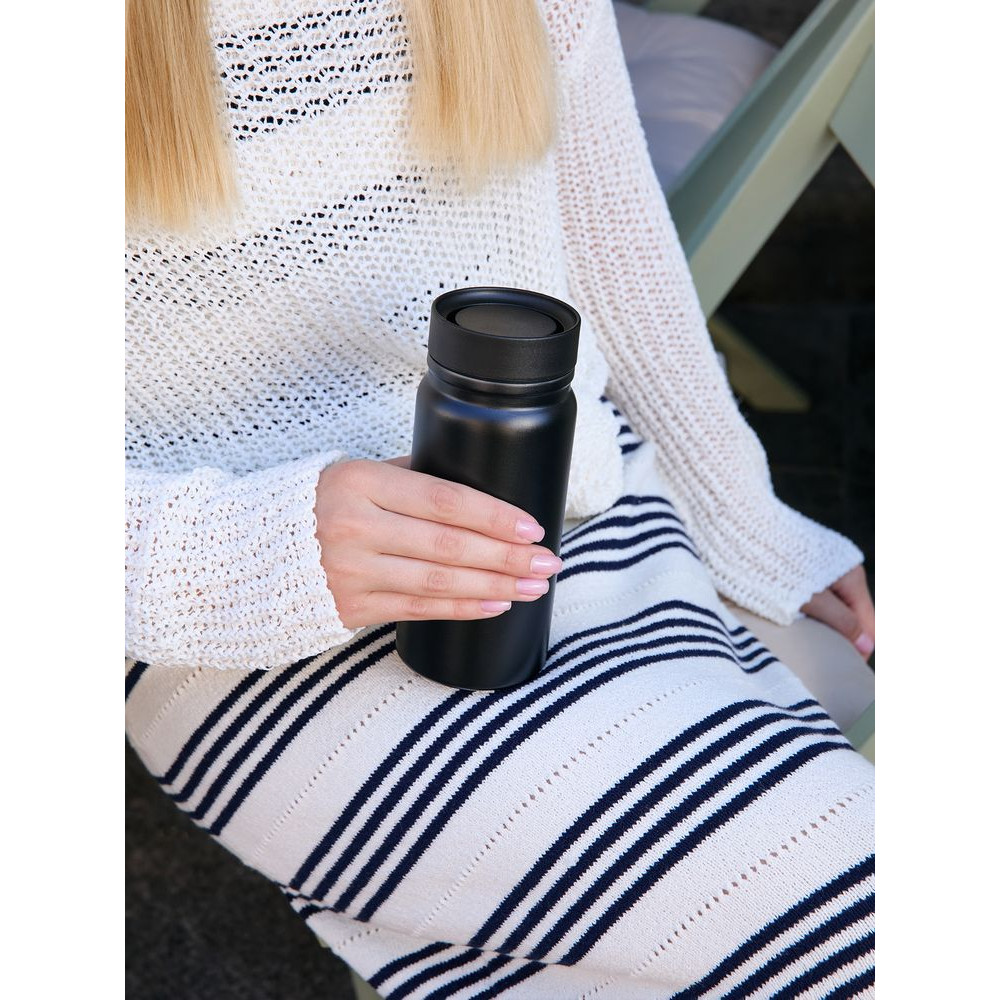 • Герметичная завинчивающаяся крышка с силиконовым уплотнителем и питьевой системой с клапаном — технология 360° позволяет одним нажатием открывать кружку и пить с любой стороны