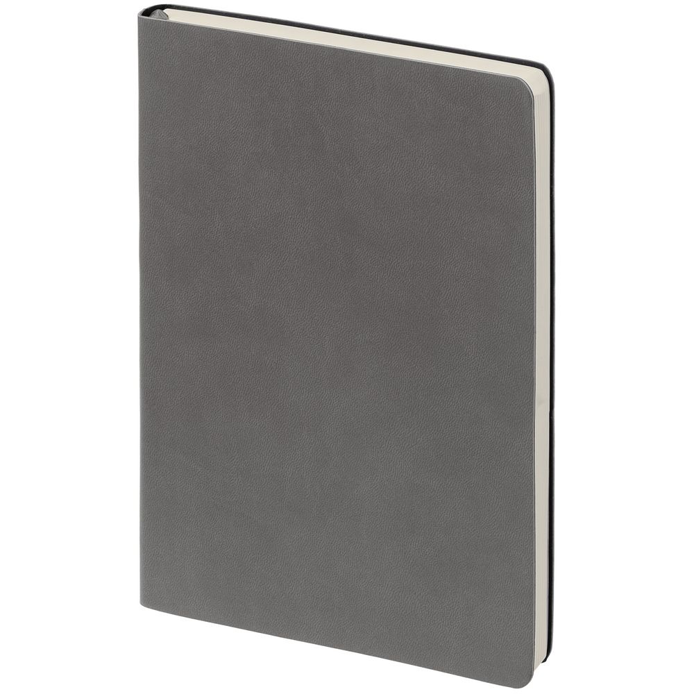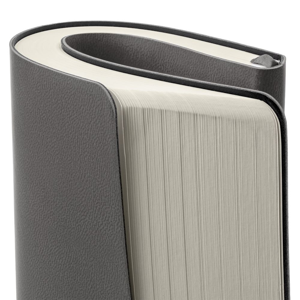 Ежедневник с гибкой обложкой, выполнен из материала Latte, темно-серый, дополнен ляссе в цвет обложки.