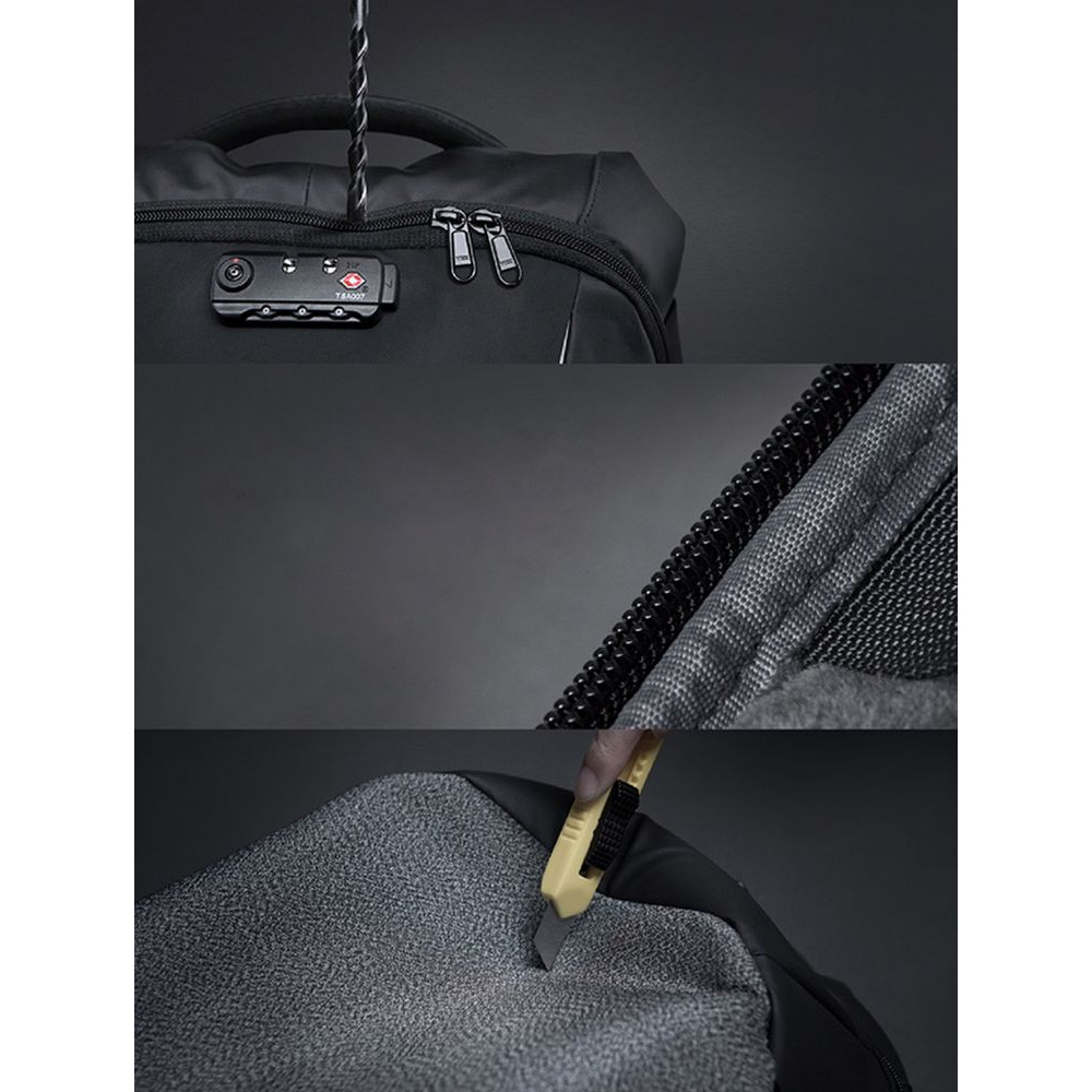 - Рюкзак закрывается на водонепроницаемую молнию YKK, которую можно зафиксировать с помощью кодового замка TSA с функцией таможенного досмотра
