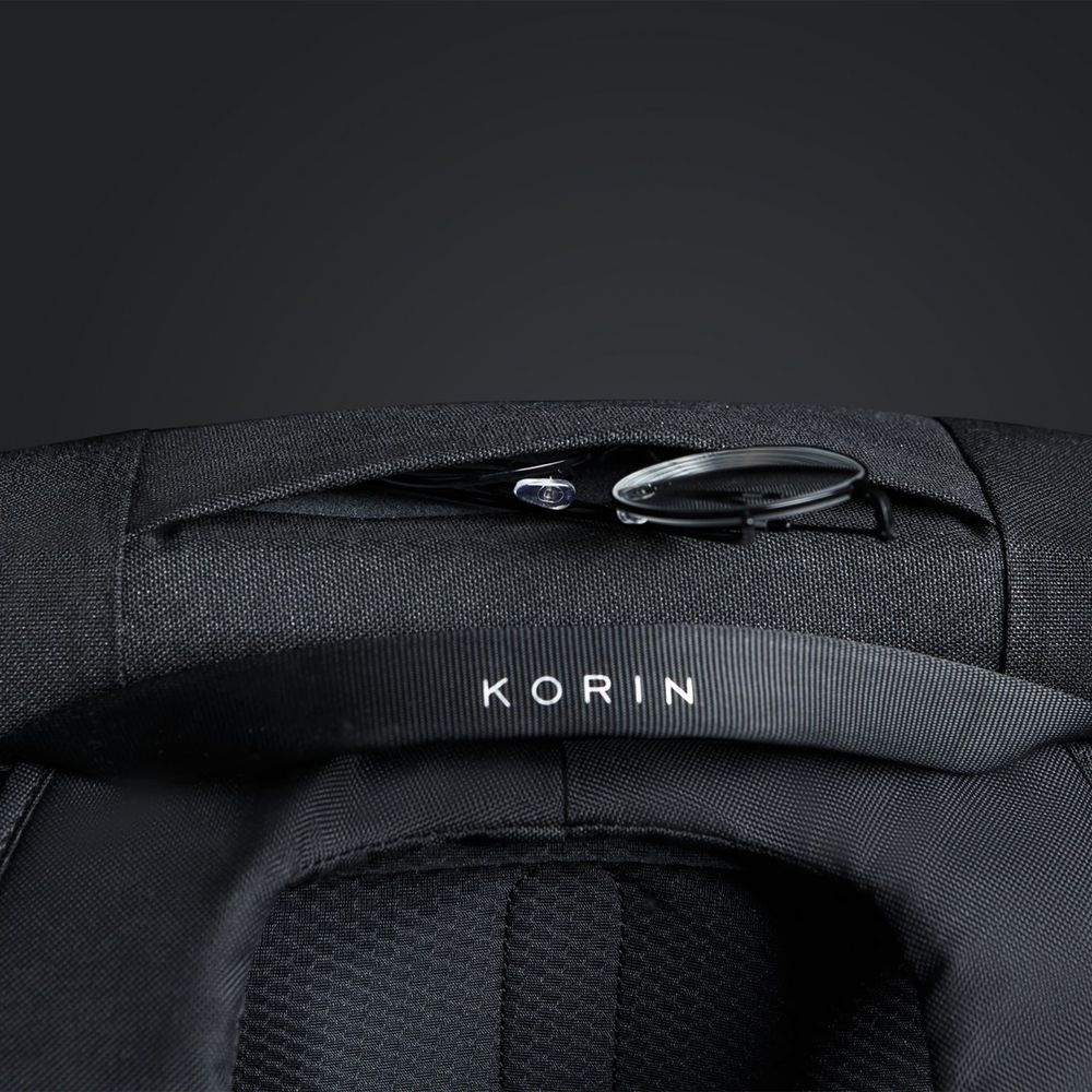 • На правой лямке рюкзака находится USB-порт, на левой — карман на липучке с двумя отделениями с RFID-защитой для карточек и ключей