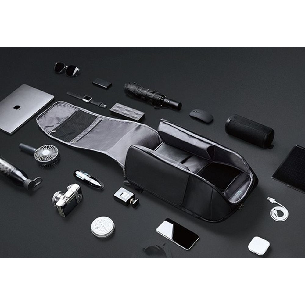 - В основном отделении 7 карманов: на спинке 4 открытых кармана и 1 на молнии, 2 кармана на молниях на откидной крышке, один из которых с портом USB для зарядки