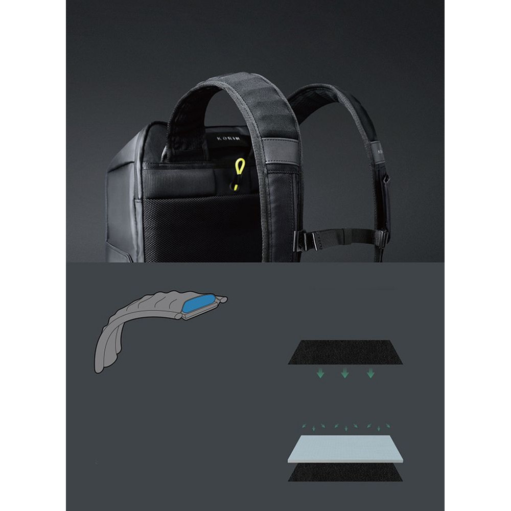 - Анатомическая конструкция рюкзака вместе с широкими лямками и поперечным ремнем на магнитной пряжке перераспределяют часть нагрузки с плеч и спины на талию и бедра, в результате чего вес рюкзака воспринимается на 20-25% легче, чем при использовании стандартных моделей