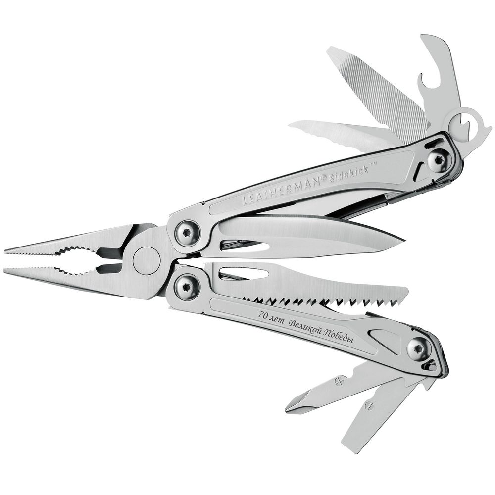 Мультитул Sidekick — это компактный набор инструментов, которые прекрасно друг друга дополняют. Главный из них  — универсальные пассатижи с тонкими острогубцами. Вся конструкция выполнена из нержавеющей стали, имеет эргономичный дизайн и малый вес. Клинок легко открывается одной рукой.Все приспособления имеют фиксаторы, предотвращающие случайное закрытие.