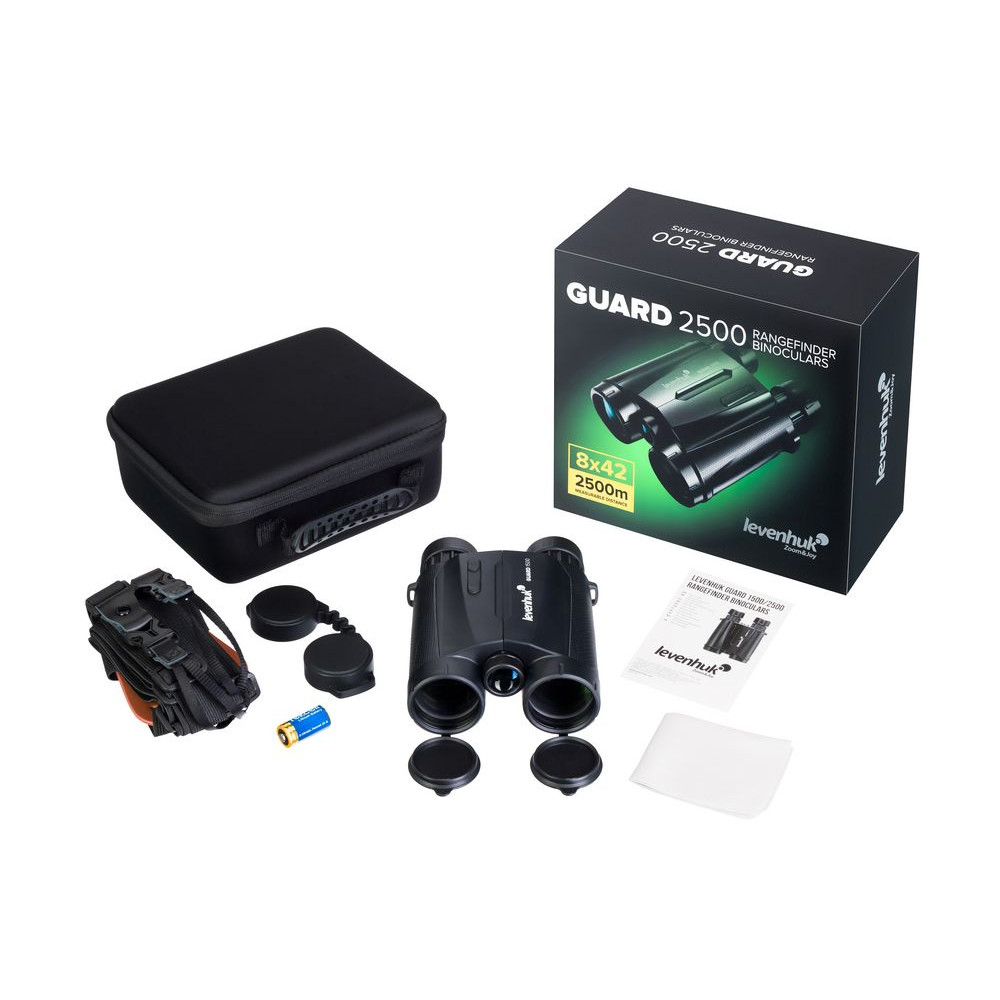 Бинокль с дальномером позволяет вести визуальные наблюдения на 8-кратном увеличении, а также измерять три параметра на местности: видимое и горизонтальное расстояния, а также угол места цели. Дальность измерений встроенного дальномера составляет 2500 метров.