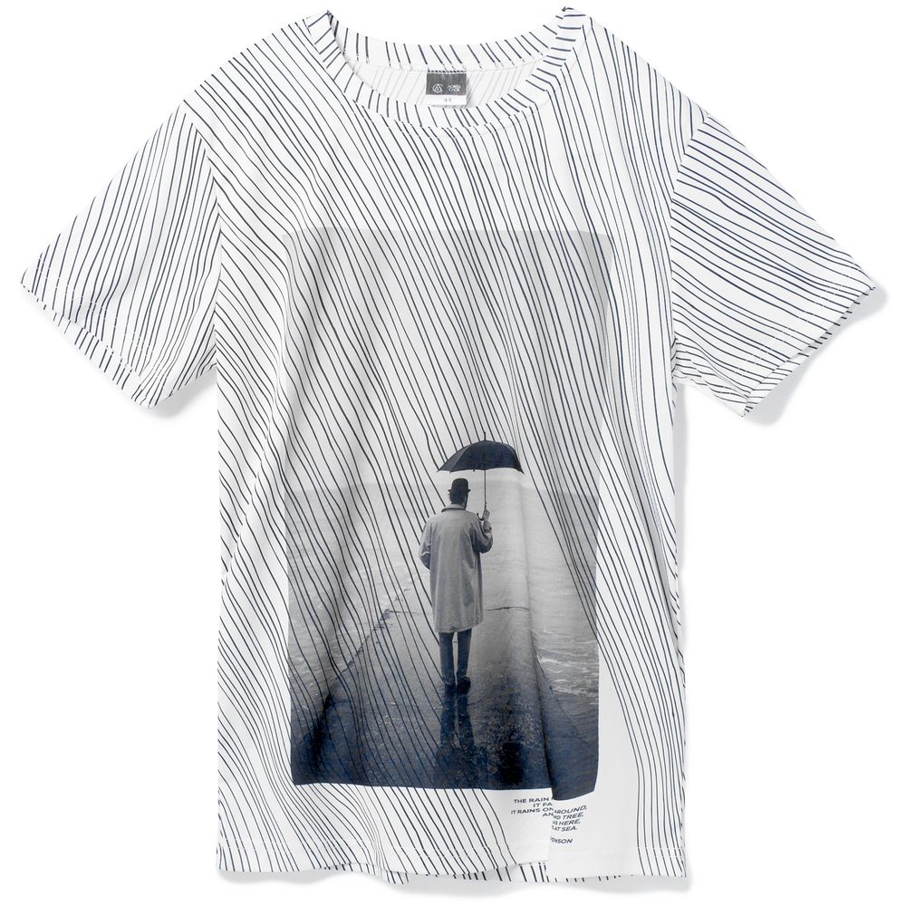 Затяжной ливень заполняет собой все пространство длинными линиями, словно строчки стихов белые страницы. Дождь — это поэзия природы. Футболка с эпиграфом.Футболка унисекс оверсайз. Окантовка горловины из основного полотна.