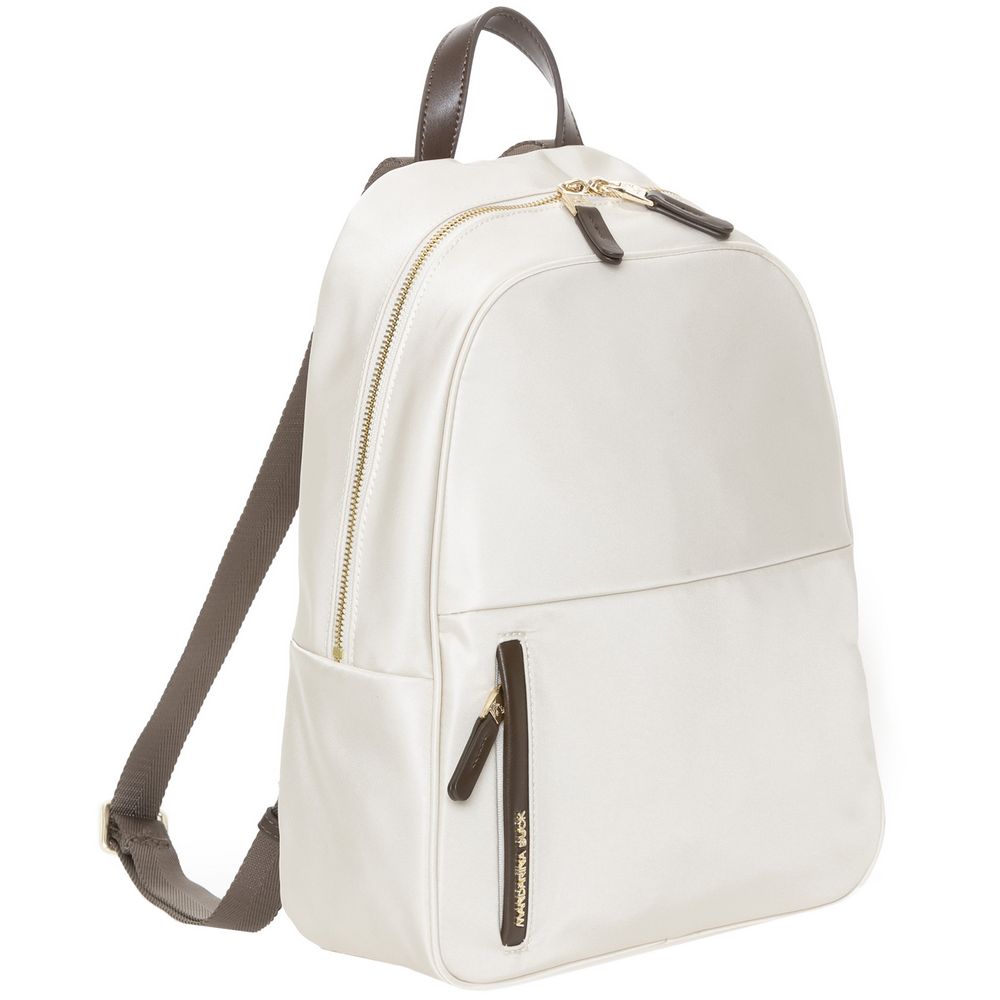 Изготовлен из гладкого влагостойкого нейлона, а также дополнен привлекательной фурнитурой из экокожи и металлизированным логотипом бренда.
