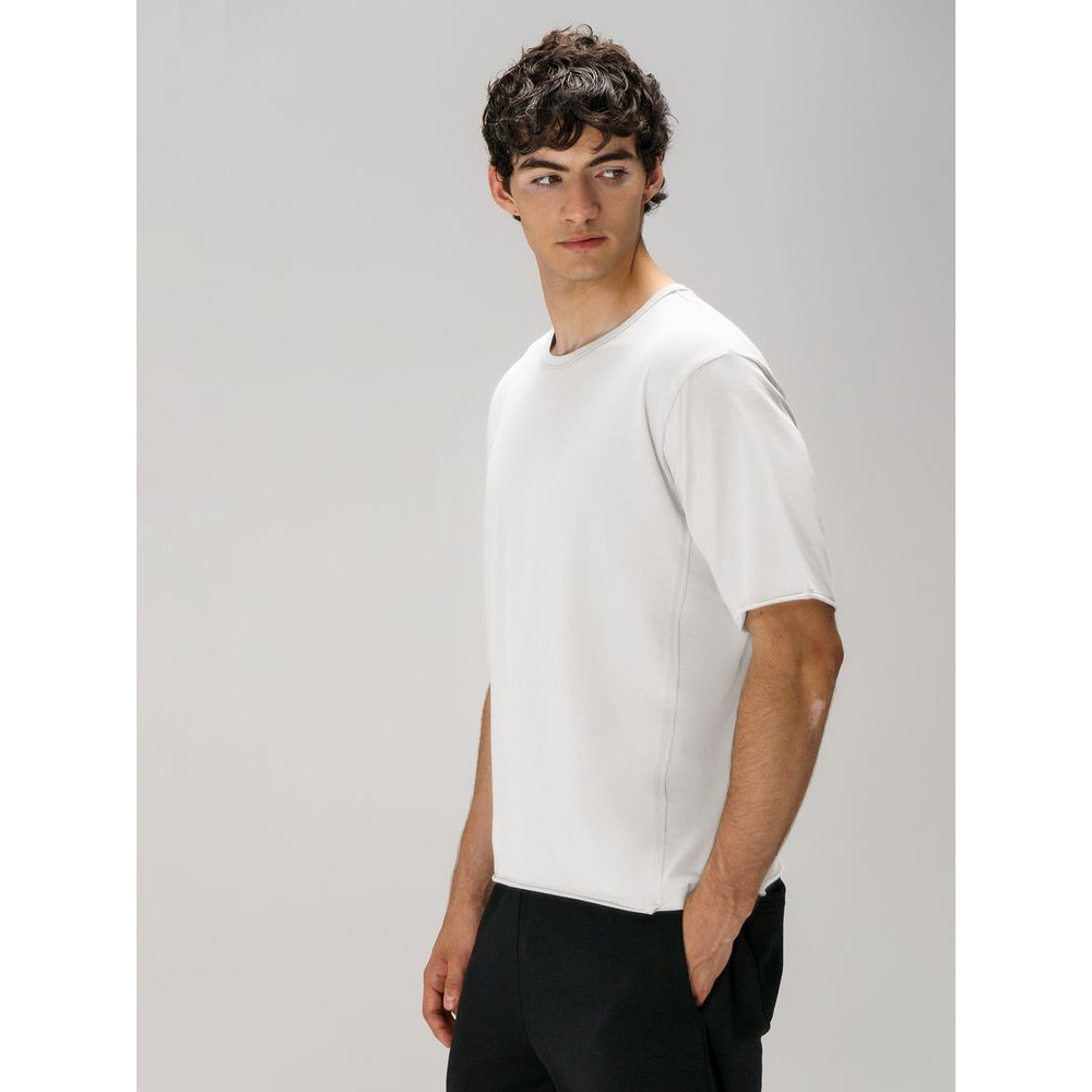 Футболка унисекс свободной посадки Vozduh создана для тех, кто следит за трендами и ценит комфорт. Необработанные края рукавов и низа изделия добавляют ему оригинальности и легкой небрежности, а боковые вставки создают притягательный летящий силуэт.