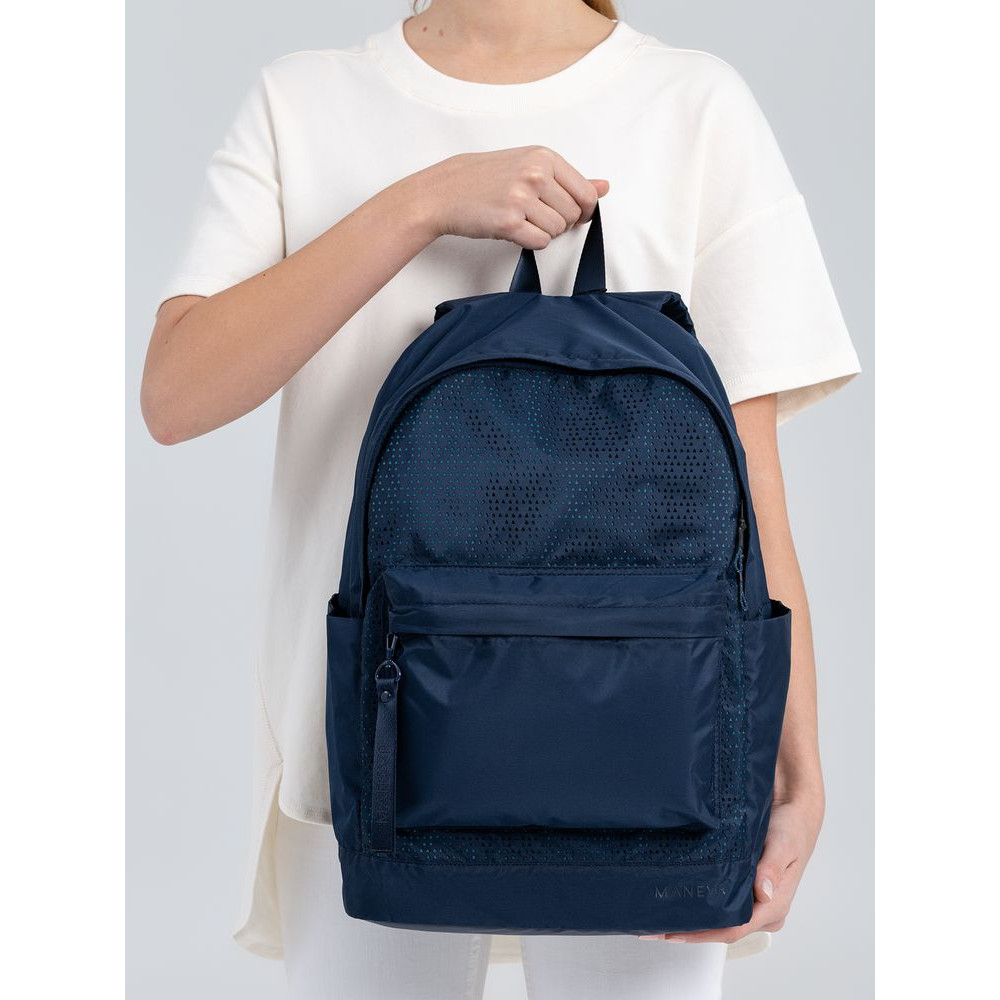 Цвета сумок  в коллекции Triangel позволяют создавать модные монохромные или контрастные сочетания с другими изделиями бренда Manevr. Рюкзаки изготовлены из шелковистого полиэстера, в отделке использована лазерная перфорация паттерна.