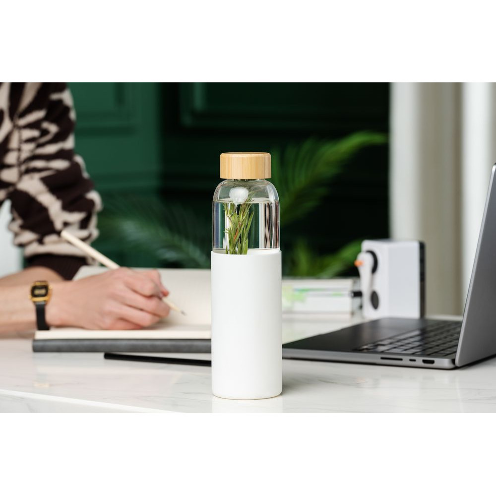 Мягкий силиконовый чехол приятно ложится в руку и защищает бутылку от случайных ударов или соскальзываний. Крышка из натурального бамбука — это природный штрих, который делает бутылку не просто функциональной, а вдохновляющей. Надежное завинчивающееся крепление предотвращает проливание воды.