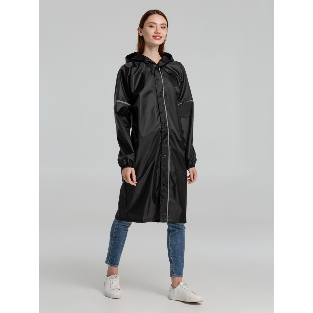 Плащ-дождевик из ткани оксфорд на кнопках с капюшоном. Световозвращающие элементы на рукавах и планке позволяют быть замеченным в темное время суток.