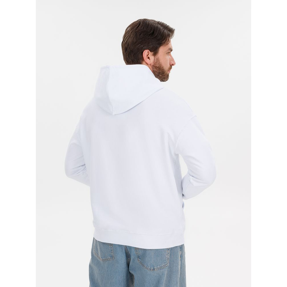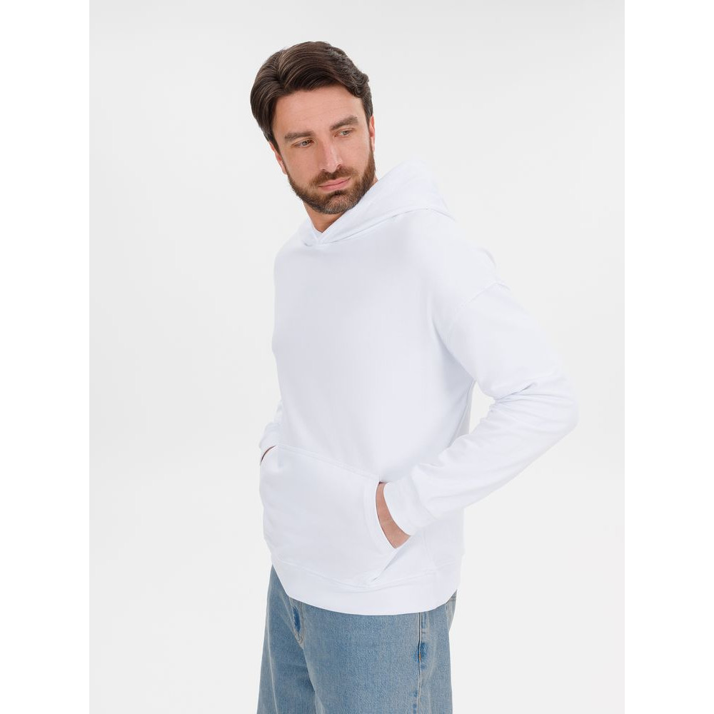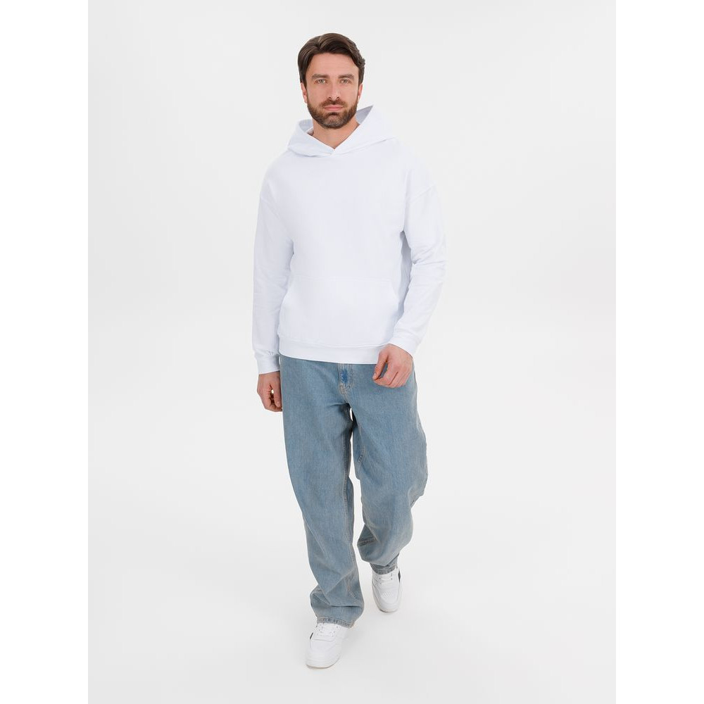 Худи унисекс со спущенным плечом и карманом-кенгуру расслабленного силуэта.