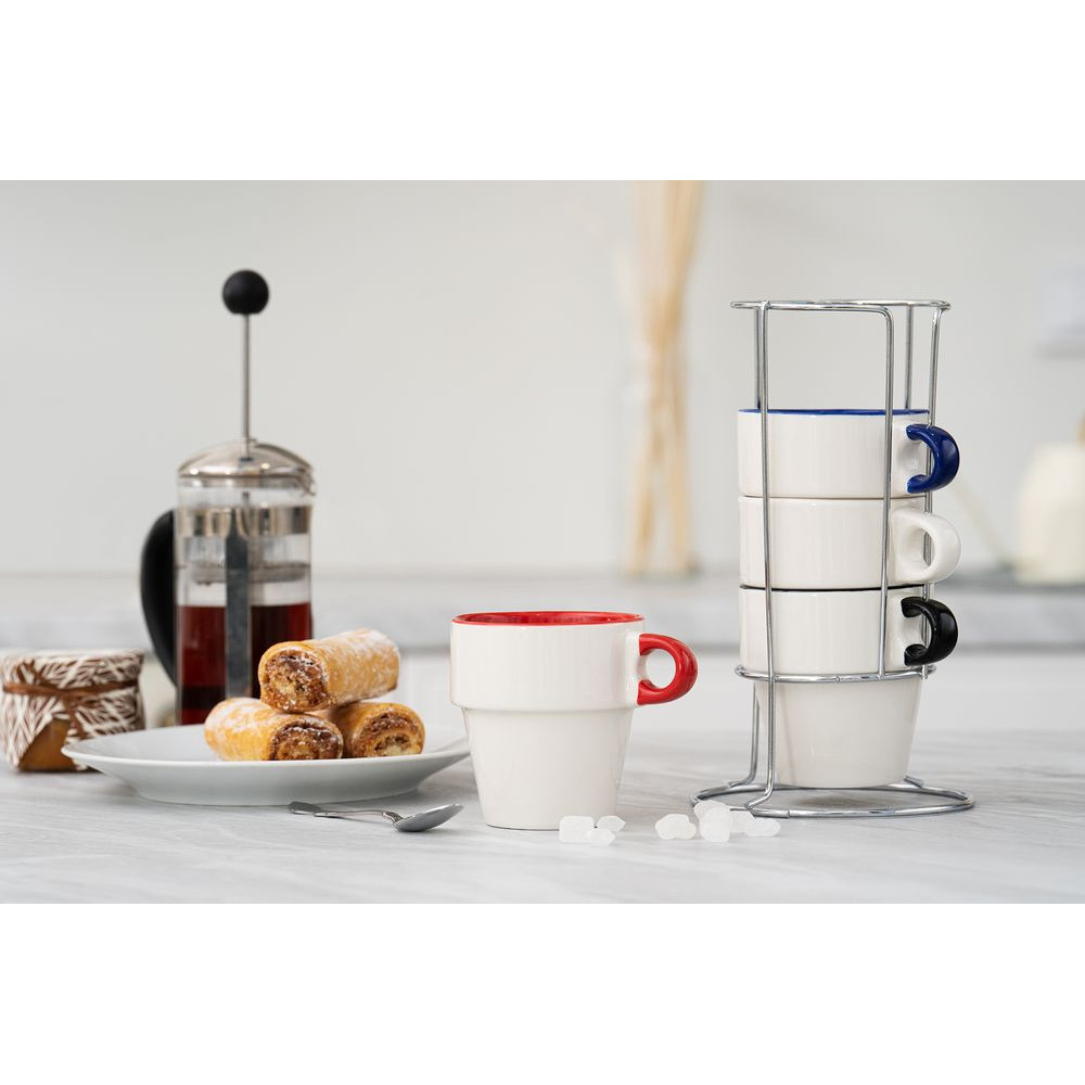Вертикальное хранение кружек экономит место на кухне, а подставка собирает набор в единое целое. Набор Inset — красивое решение для компактной кухни.