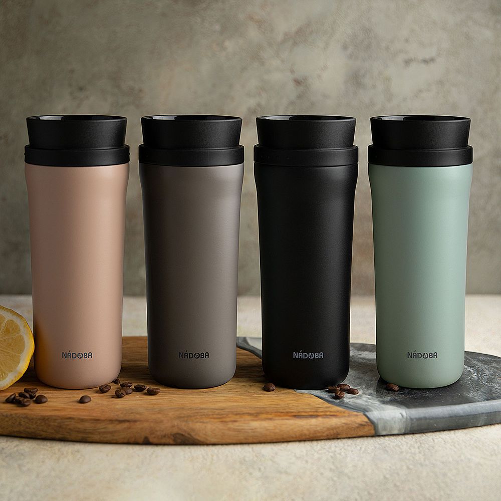 - Герметичная завинчивающаяся крышка с силиконовым уплотнителем и питьевой системой с клапаном — технология 360° позволяет одним нажатием открывать кружку и пить с любой стороны