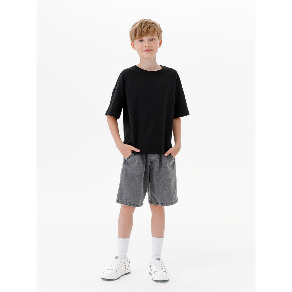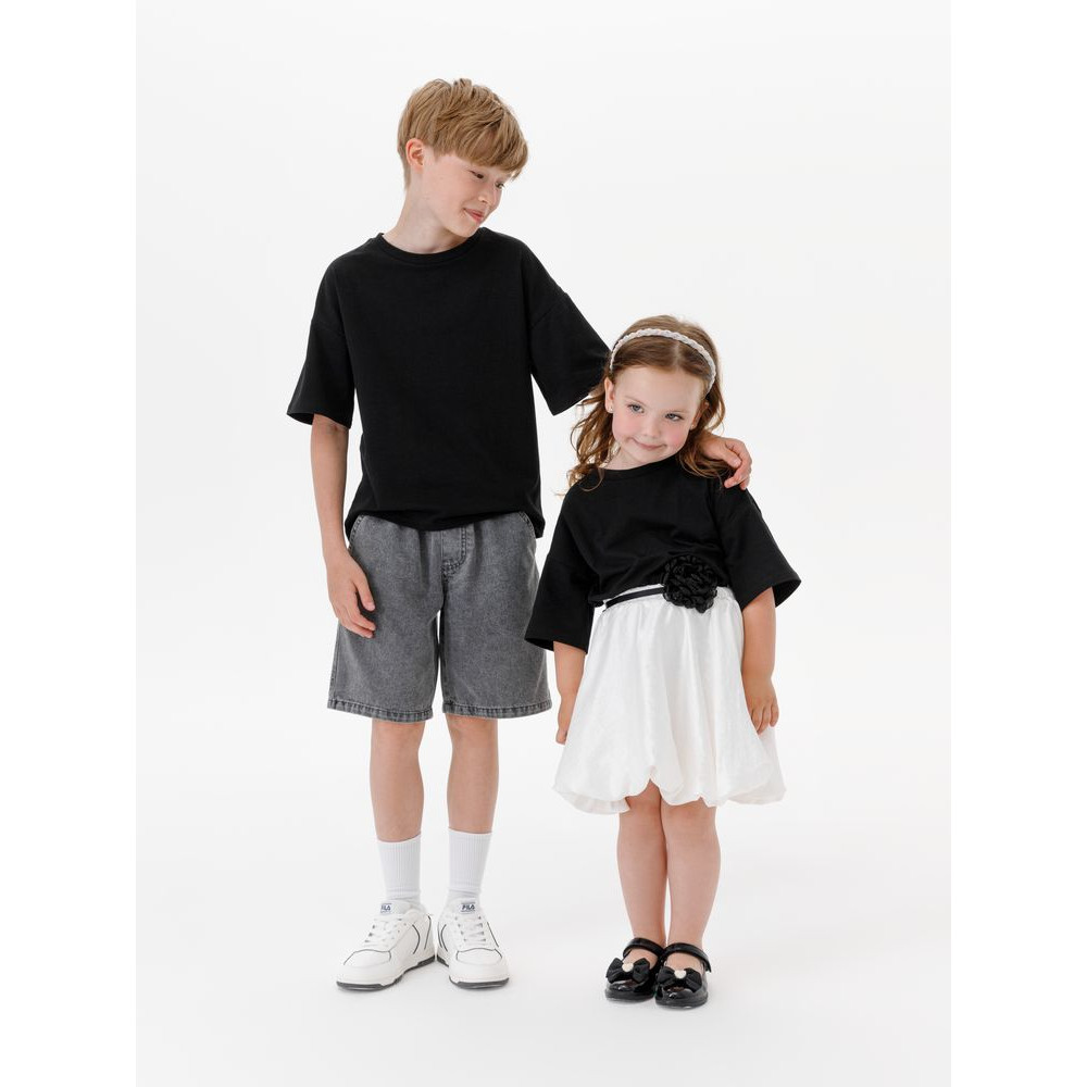 Детская футболка оверсайз из гребенного хлопка с эластаном не стесняет движений и создает модный силуэт.
