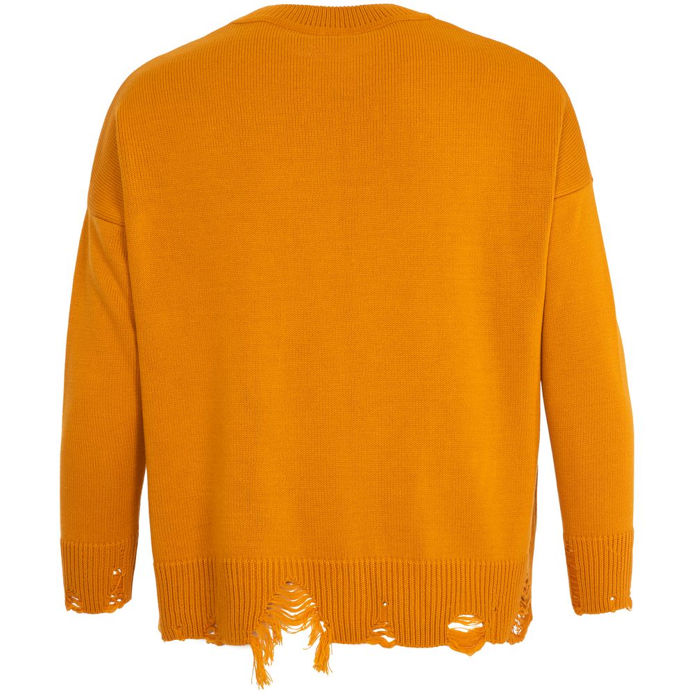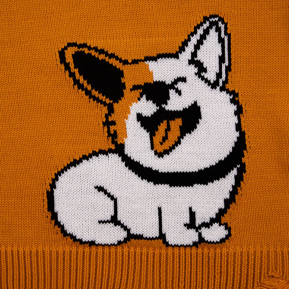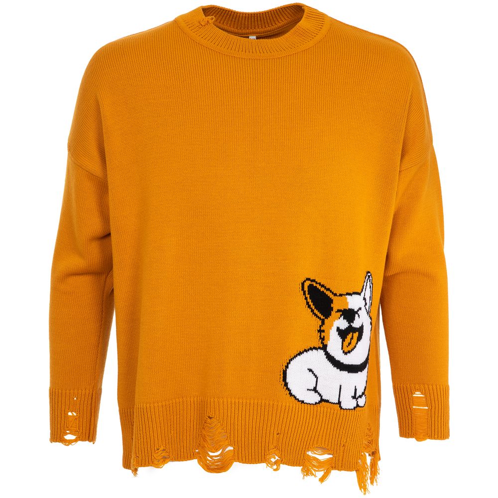 Свитер унисекс с вывязанным логотипом и индивидуальным рисунком в фирменной цветовой гамме.