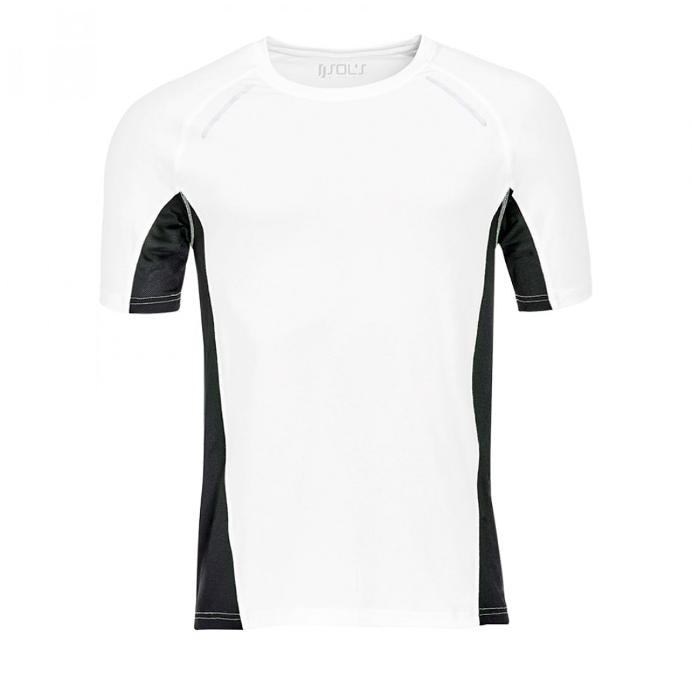 Контрастная мужская футболка SYDNEY MEN с короткими рукавами реглан и круглым воротом специально предназначена для бега и активных занятий спортом.