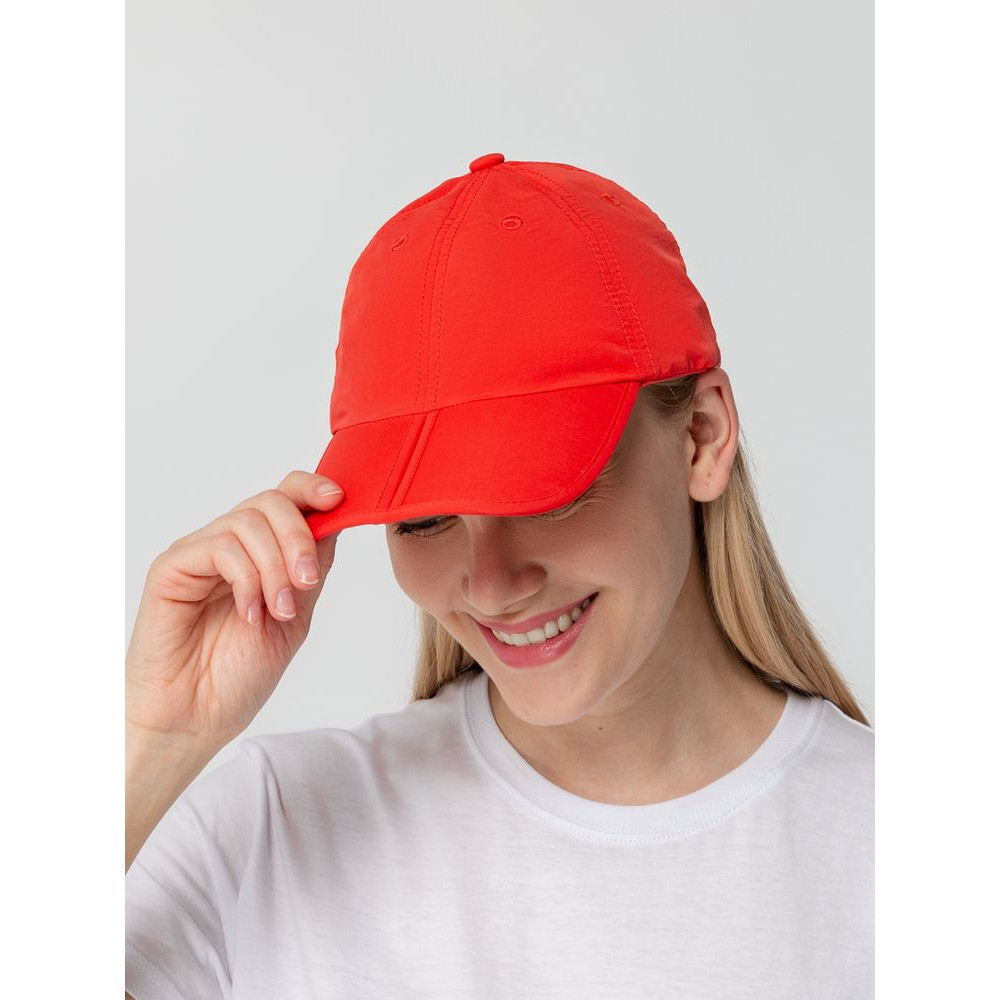Бейсболка удобно складывается — ее  можно убрать в рюкзак или чемодан, не опасаясь, что козырек потеряет форму. При этом внешне она выглядит как обычная: шов посередине не искажает классическую форму козырька, когда кепка надета на голову.