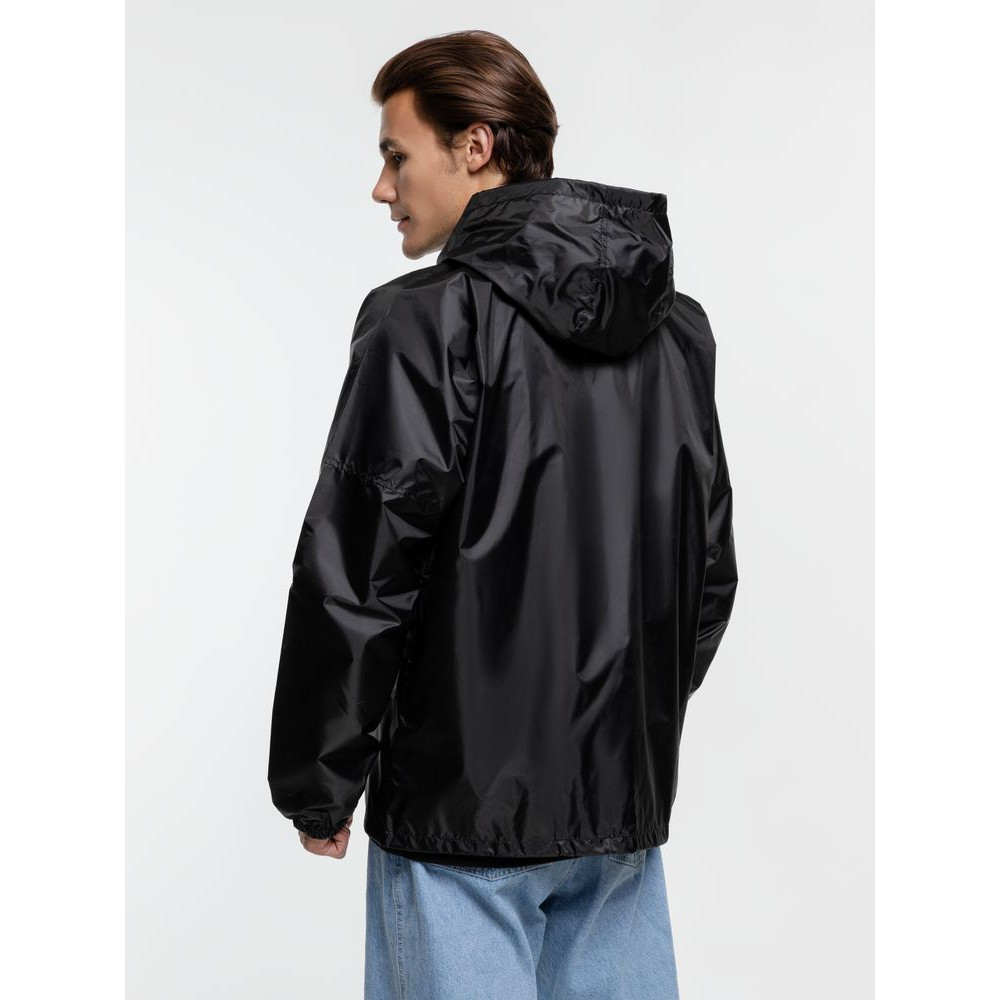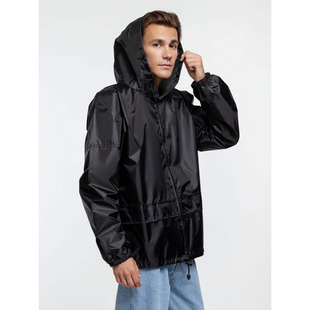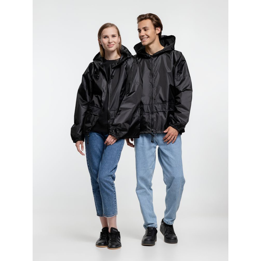 Укороченный дождевик свободного кроя из ткани таффета с влагозащитным покрытием. Складывается в мешочек — удобно брать с собой.