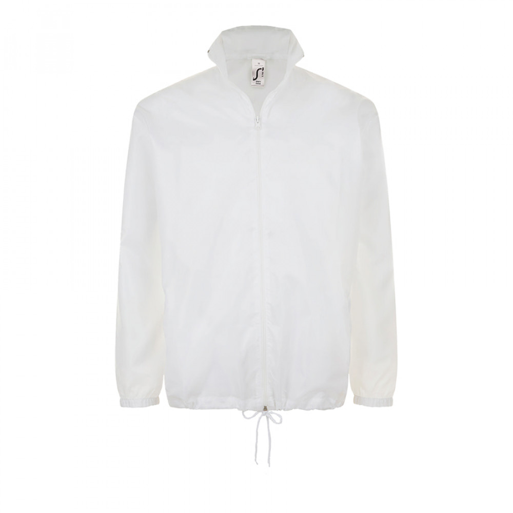 Легкая ветровка унисекс с облегченной пластиковой молнией. Воротник с убирающимся капюшоном. Эластичные манжеты на резинке.