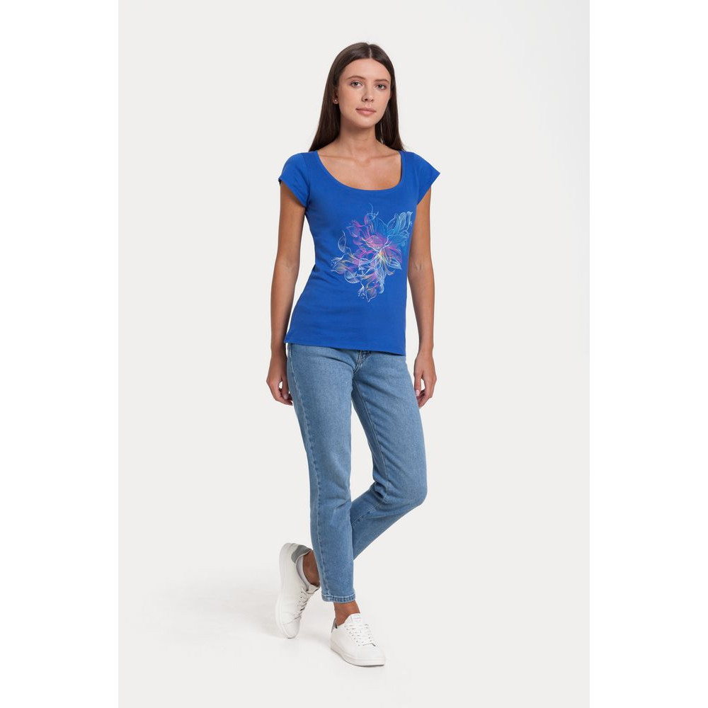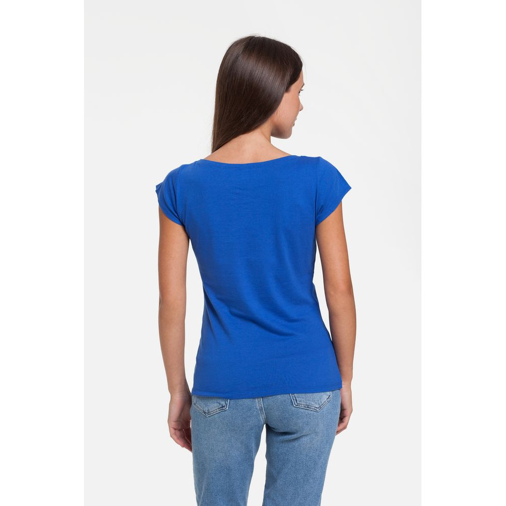 Коллекция Vibrance: для тех, кто живет прислушиваясь к зову своего сердца и чувствует бит окружающего мира.Футболка женственного приталенного силуэта с американской проймой и глубоким вырезом, отделанным обтачкой из джерси. Двойная прострочка на вороте спереди, на рукавах и по низу.