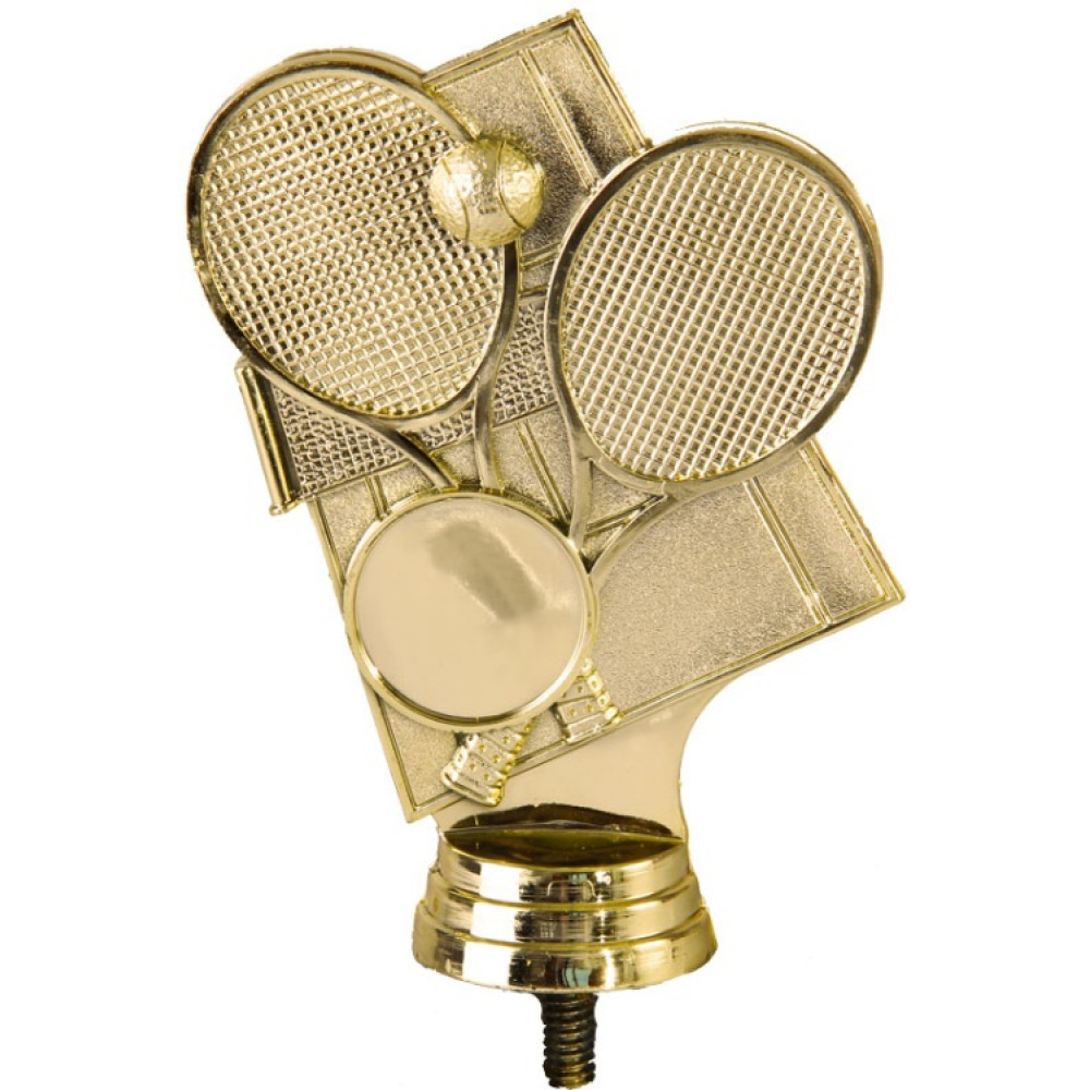 Цвет: золото, материал: пластик. Вид спорта: большой теннис. Фигурка выполнена в виде прямоугольника, который является миниатюрной версией поля для игры в гольф. Прямоугольник покрыт шагренью. Визуально он разделен на две половины сеткой. Сверху на поле изображены ракетки для игры в теннис, рядом – объёмный теннисный мячик. Слева внизу имеется место для нанесения персонализации, обрамлённое обручем. Фигурка выполнена в золотом цвете, что придаёт ей роскоши и уникальности. Ниже - круглое основание, на котором имеются горизонтальные линии. Высота, см: 10.8 Вес, кг: 0.04. Фигурку возможно закрепить на цоколь, постамент или кубок.