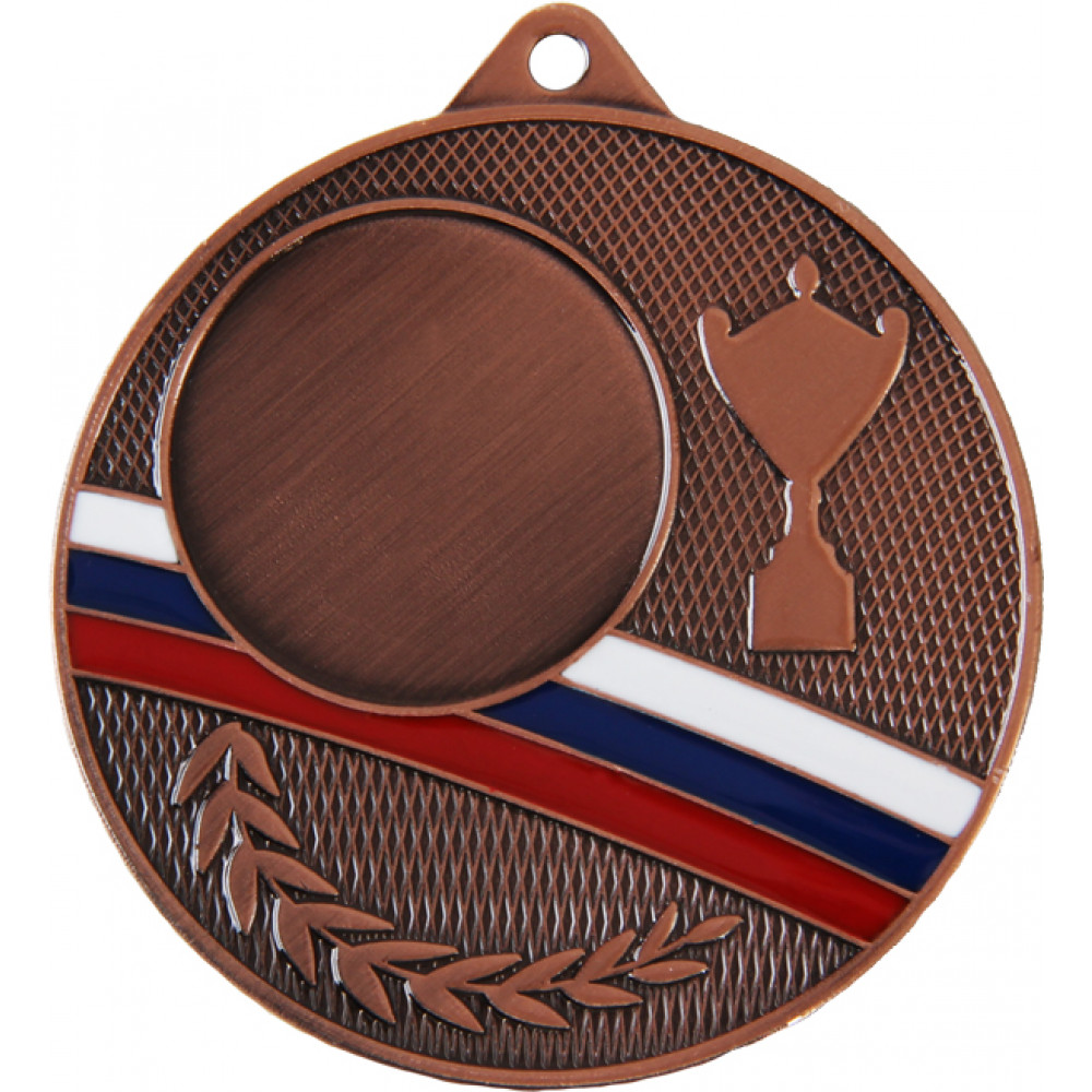 Медаль круглая металлическая. Диаметр 50 мм.¶Цвет медали, имитирующий золото/серебро/бронзу.¶Сверху расположено круглое ушко для крепления ленты. Медаль имеет кант.¶В левой верхней части медали расположено место под вкладку, размер 25 мм.¶Справа от места под вкладку расположен выпуклый кубок. Фон медали в виде тонких перекрещенных линий, образующих ромбы. Под вкладышем находится три полосы, окрашенных в российский флаг. Под флагом расположена лавровая ветвь, идущая слева направо, изогнутая по форме медали, насчитывает 9 пар листочков.¶На медали нет никаких других изображений, нет рисунков, относящихся к конкретному виду спорта.