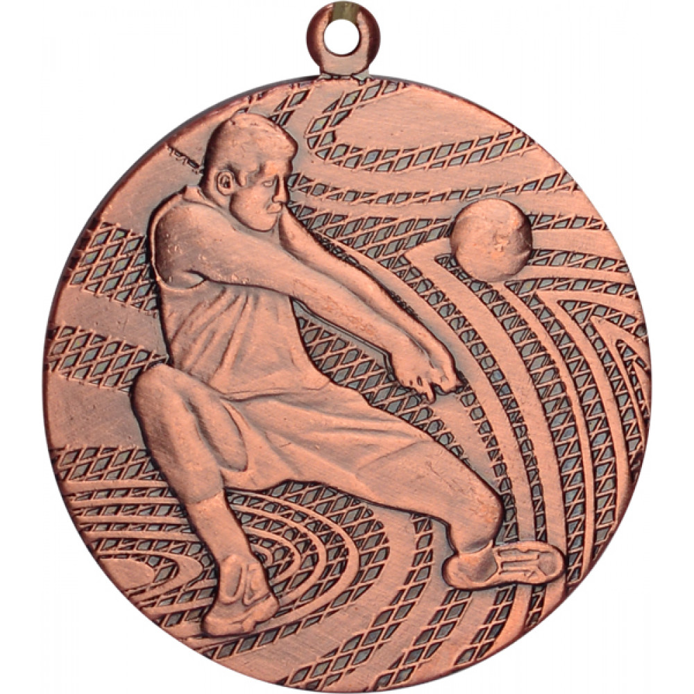 Медаль металлическая, круглой формы. Диаметр 40 мм, толщина 2 мм.¶Цвет медали, имитирующий золото/серебро/бронзу.¶Сверху расположено округлое ушко для крепления ленты.¶На аверсе медали нет места под вкладыш.¶В центральной части лицевой стороны медали изображен волейболист, принимающий мяч двумя руками снизу. Фон медали украшен выпуклой сеткой. Поверх сетки расположены выпуклые гладкие элементы в виде линий, образующих овалы. Часть линий образуют треугольную форму.¶На медали нет никаких других изображений.