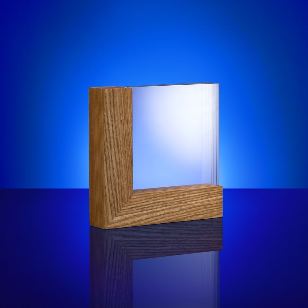 Стела Woodlyn объединяет в себе натуральную красоту ясеня и элегантность стекла. Прозрачные вставки из оргстекла добавляют стеле легкости и изящества, создают эффектный контраст с деревянной основой, придавая изделию современный и стильный вид.