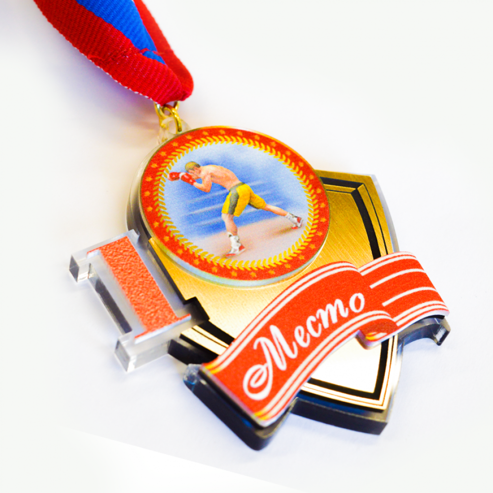Медаль из акрила 3-слойная (акрил + акрил + пластик) с УФ-печатью