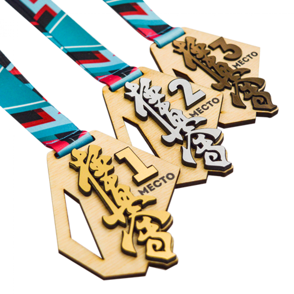 • Медаль из дерева с пластиком 2-слойная, с УФ-печатью