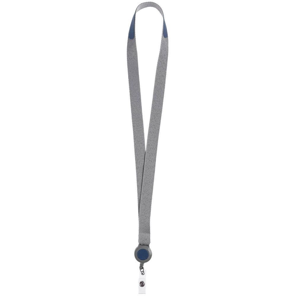 Лента для бейджа с ретрактором Devon, серая с синим