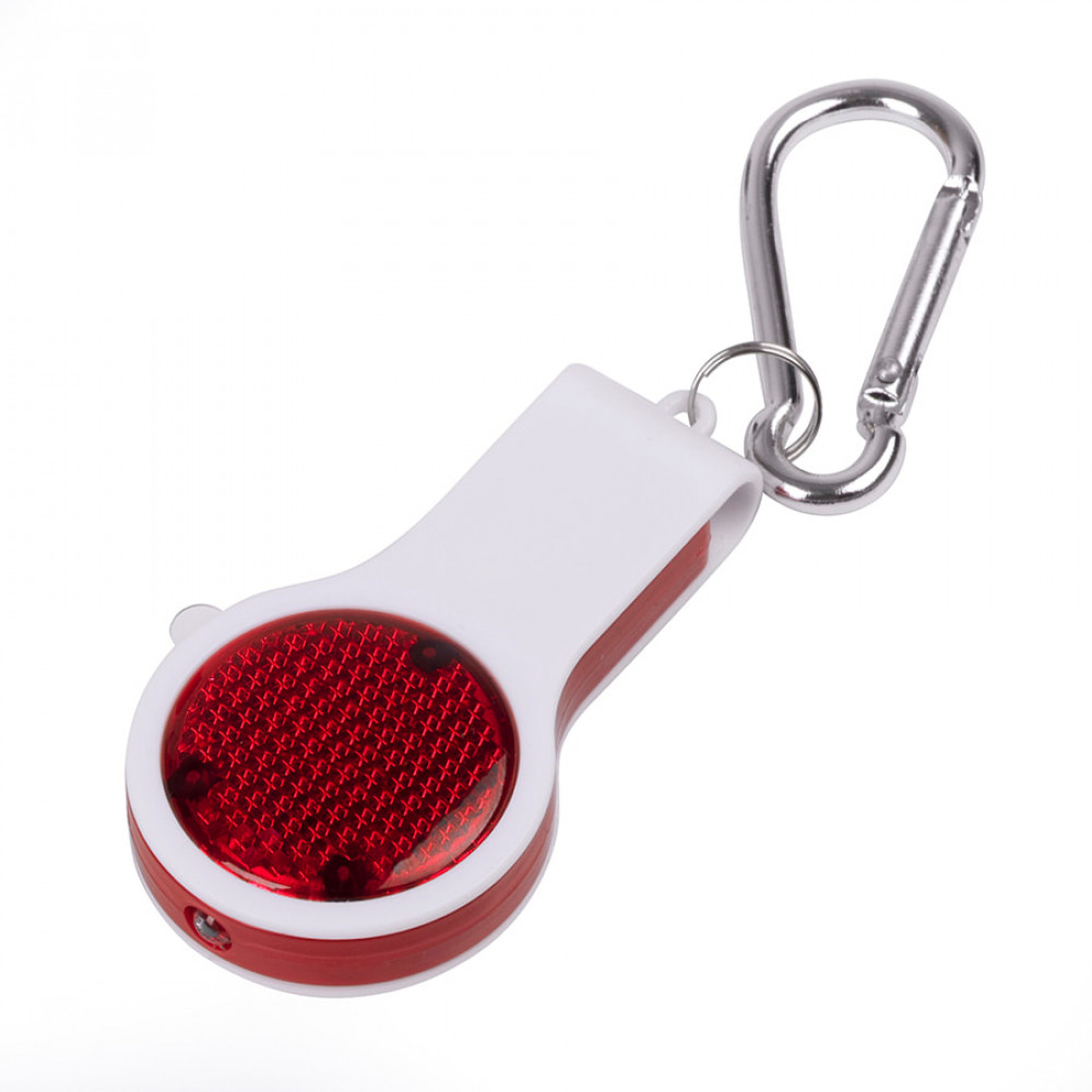 • Брелок FLOYKIN со свистком, фонариком, светоотражателем на карабине, красный с белым, 3,7х6,7х1,5см