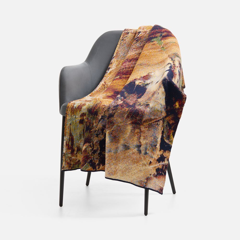 Модель: плед жаккардовой вязки, гладкая поверхность, 6-8 цветов нитей в одном ряду, рябая изнанка.