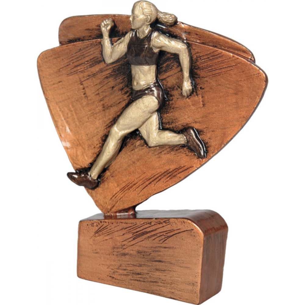 Фигурка литая "Бегунья". Цвет бронза. Высота 11,5 см. Представляет собой треугольник со скругленными углами и сторонами, установленный на прямоугольную подставку. По центру треугольника изображена бегущая девушка.