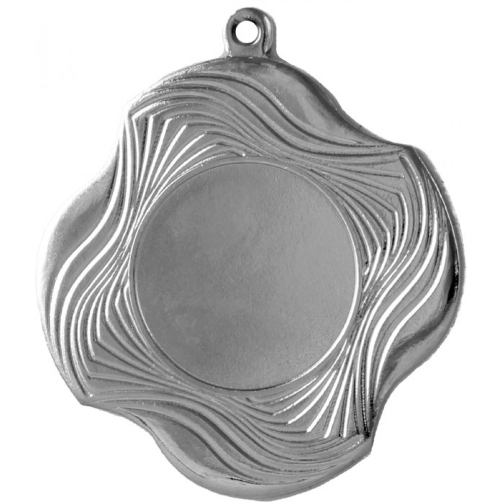 Медаль металлическая. Диаметр 50 мм, толщина 2 мм.¶Цвет медали, имитирующий золото/серебро/бронзу.¶Сверху расположено округлое ушко для крепления ленты.¶В центре аверса расположено место под вкладку, имеет тонкий кант, диаметр 25 мм.¶На лицевой части медали расположены хаотичные волнистые линии, которые, изгибаясь образуют неровный диаметр медали в виде крестообразной фигуры с округлыми сторонами.¶На медали нет никаких других изображений, нет рисунков, относящихся к конкретному виду спорта.