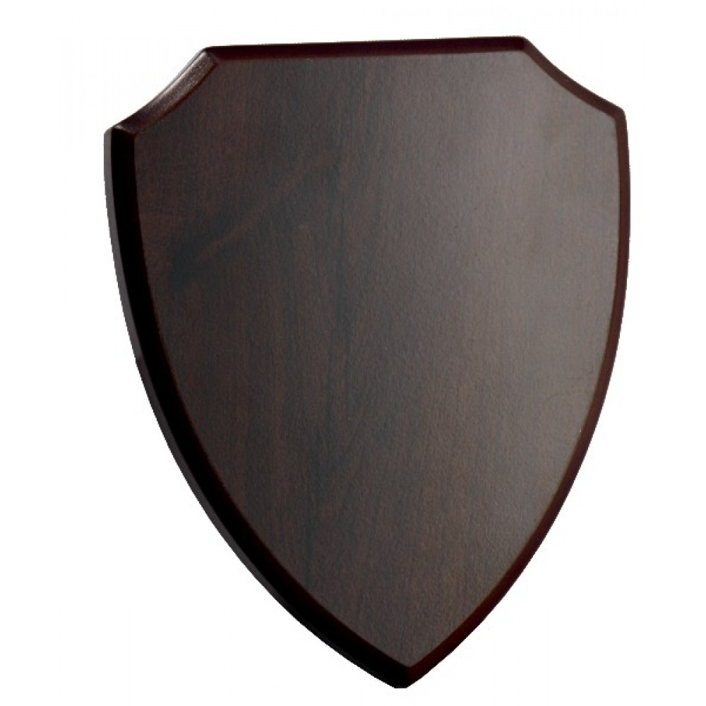 Плакетка деревянная, цвет коричневый, форма - щит. Края плакетки сглажены.