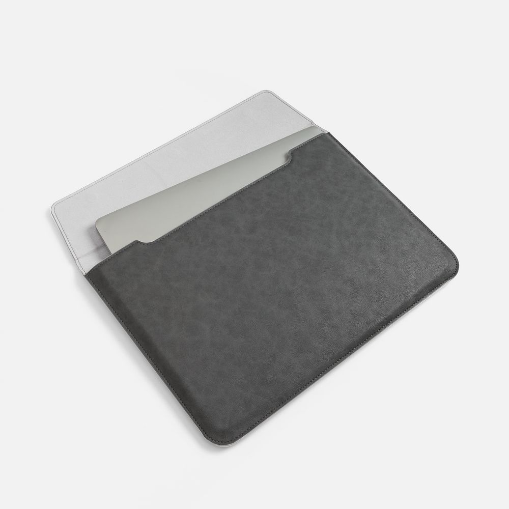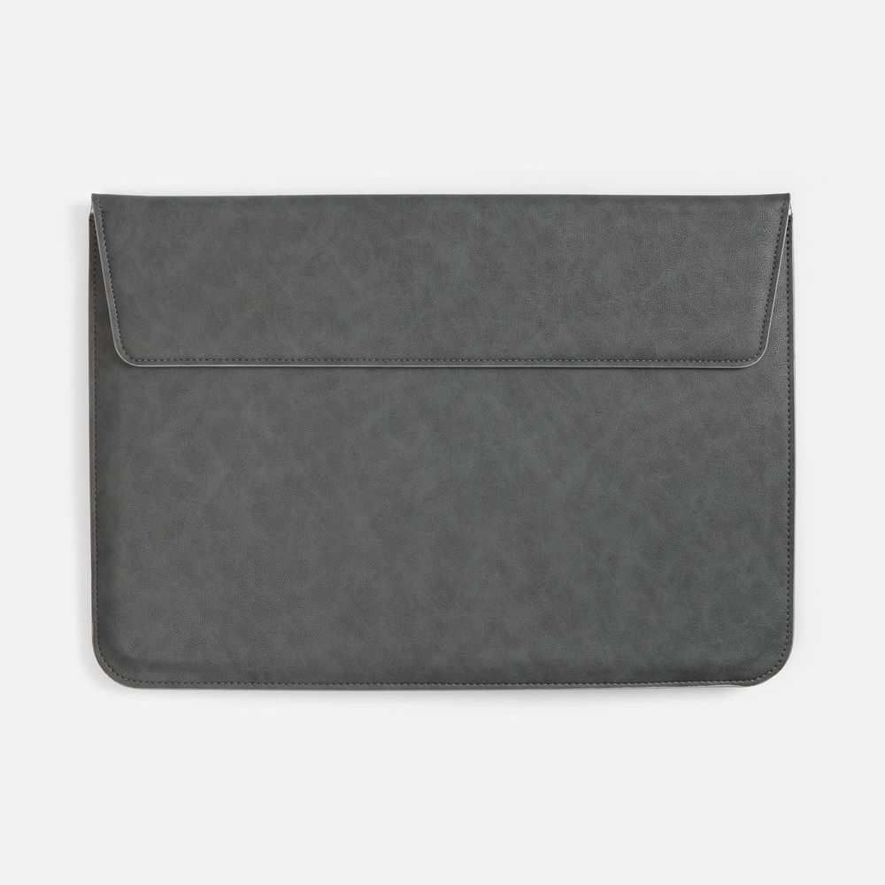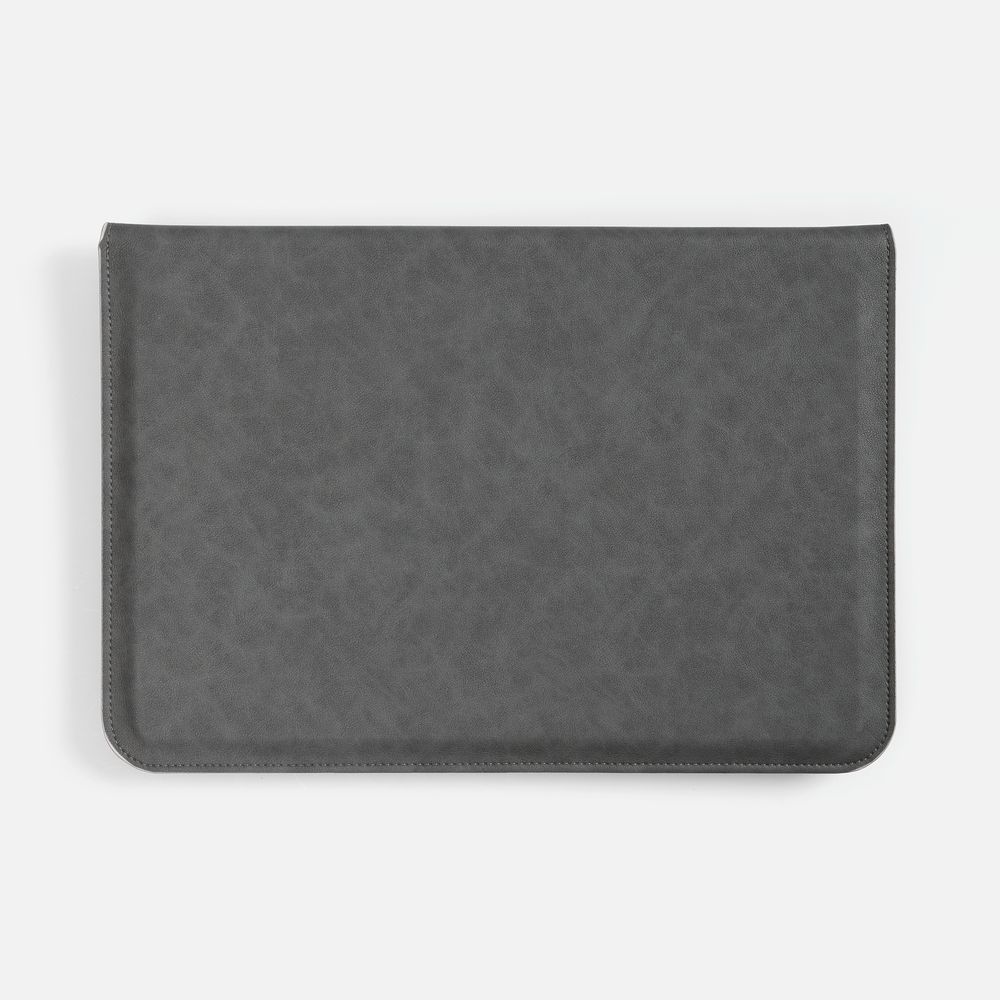 Чехол для ноутбука с диагональю до 15,6 выполнен из материала Petrus, серого цвета, дополнен окрашенным срезом края серого цвета.