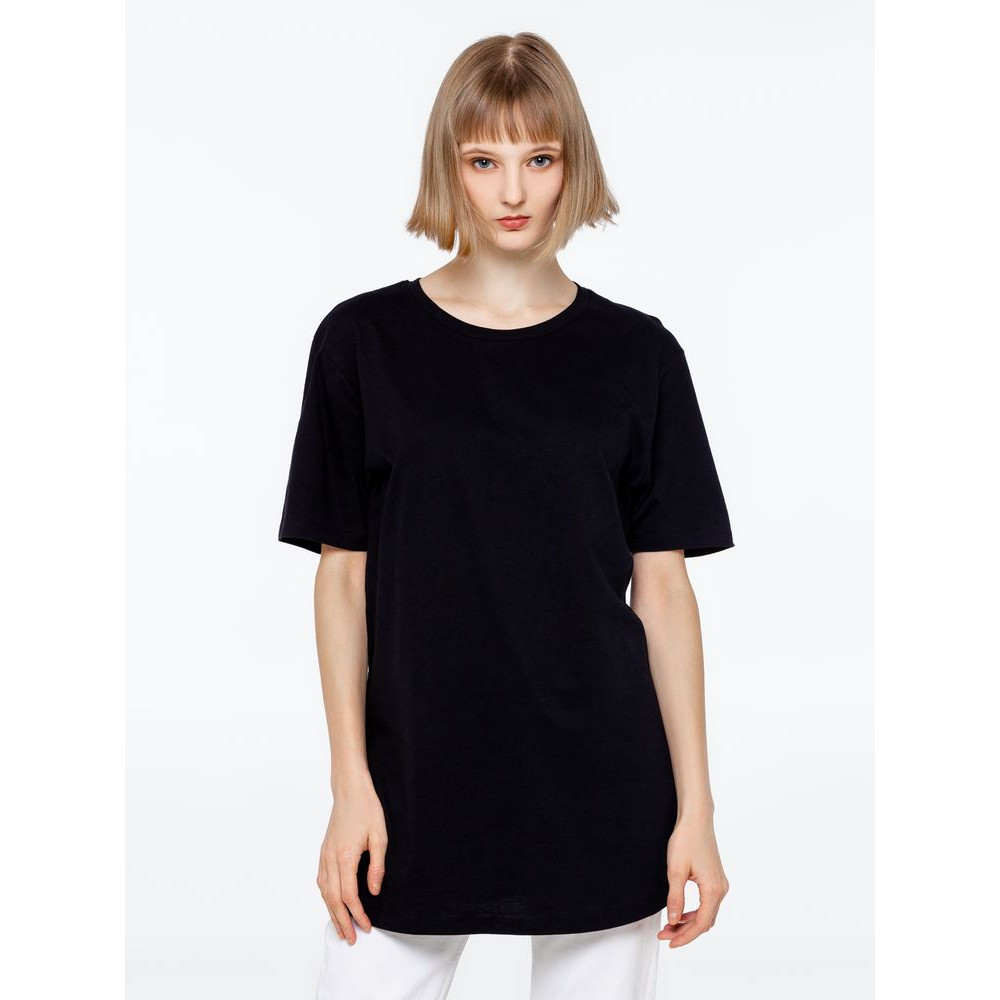 Удлиненная футболка из джерси c боковыми швами и круглым вырезом.
