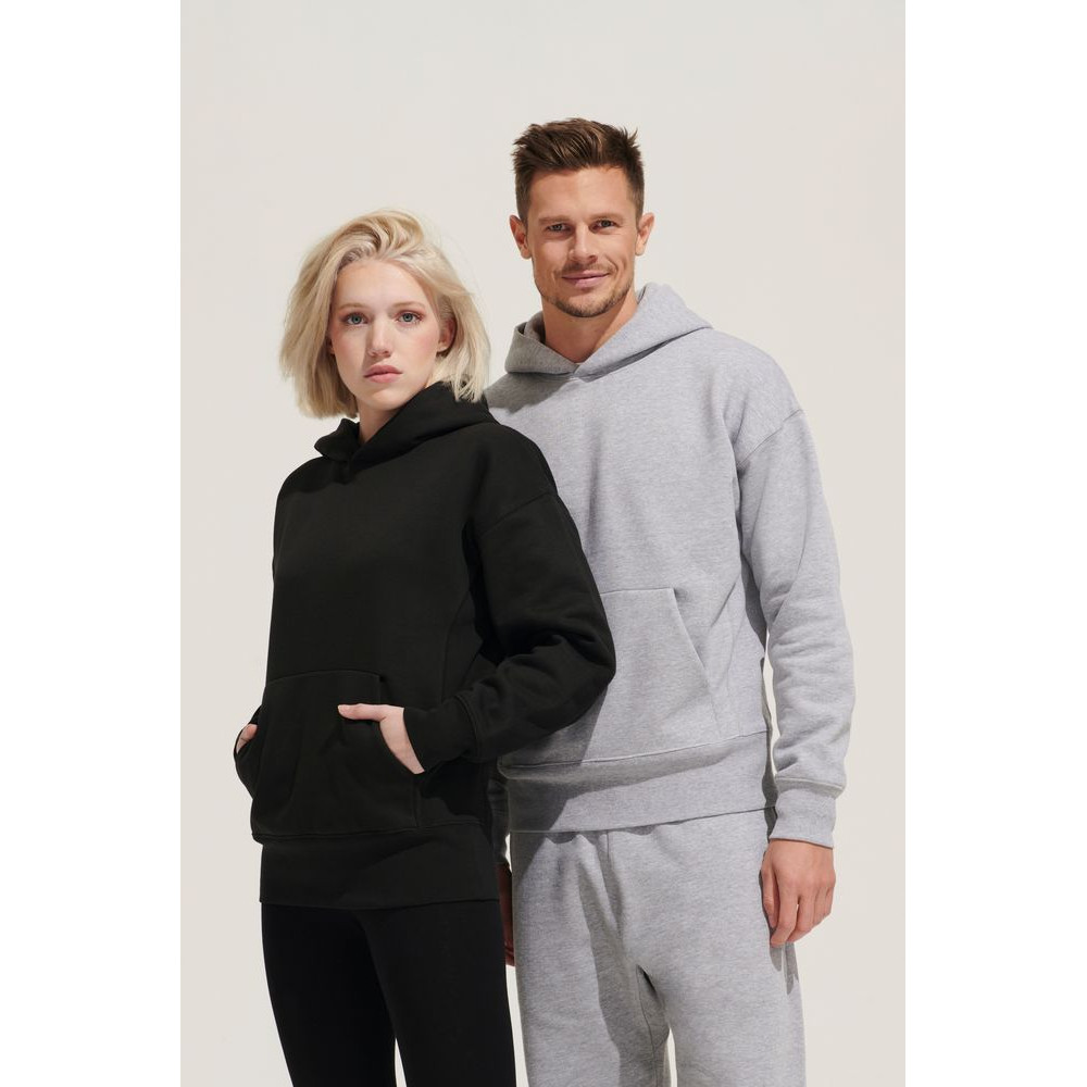 Худи унисекс со спущенным плечом и карманом-кенгуру.