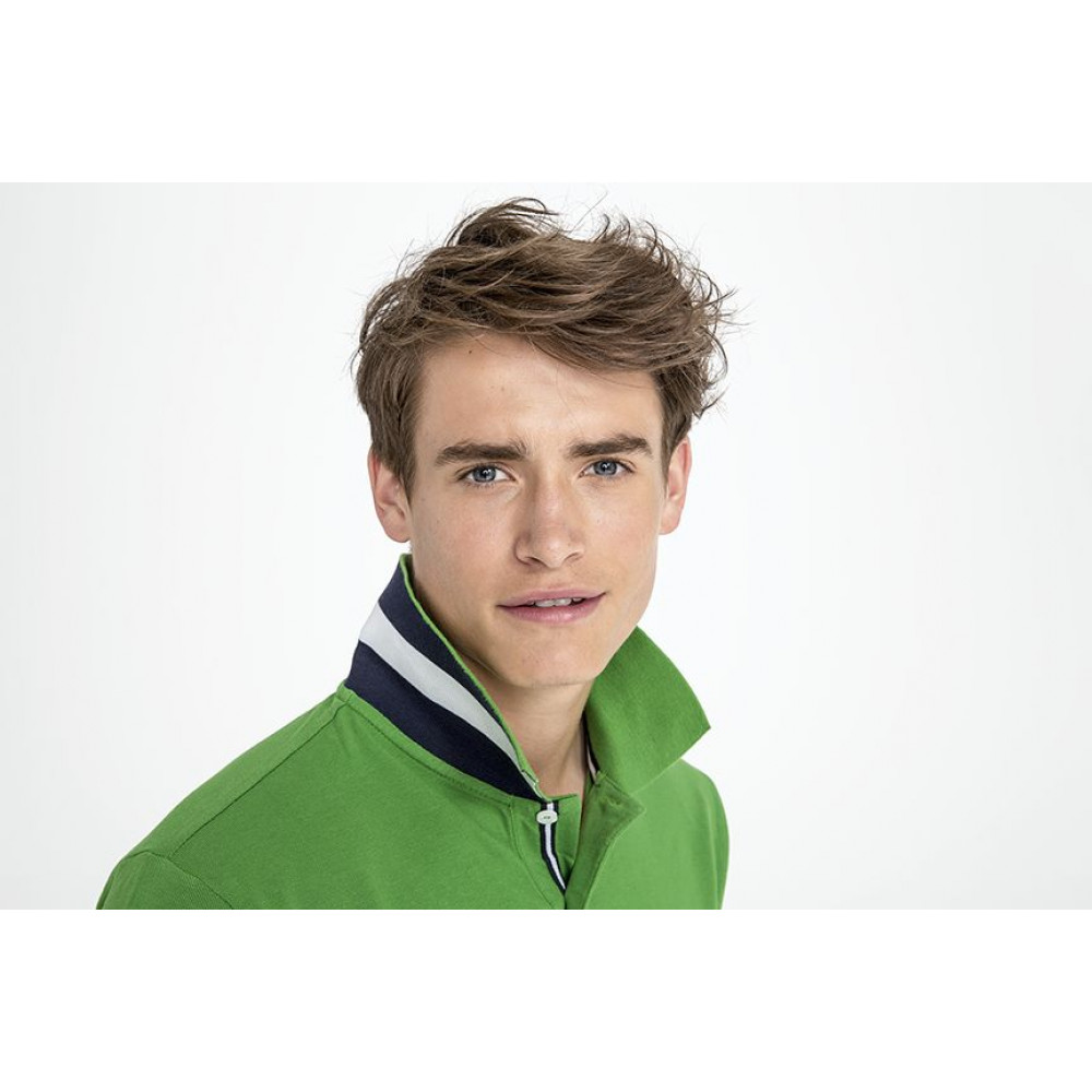 - Контрастная полоска на планке и на внутренней тесьме по вороту